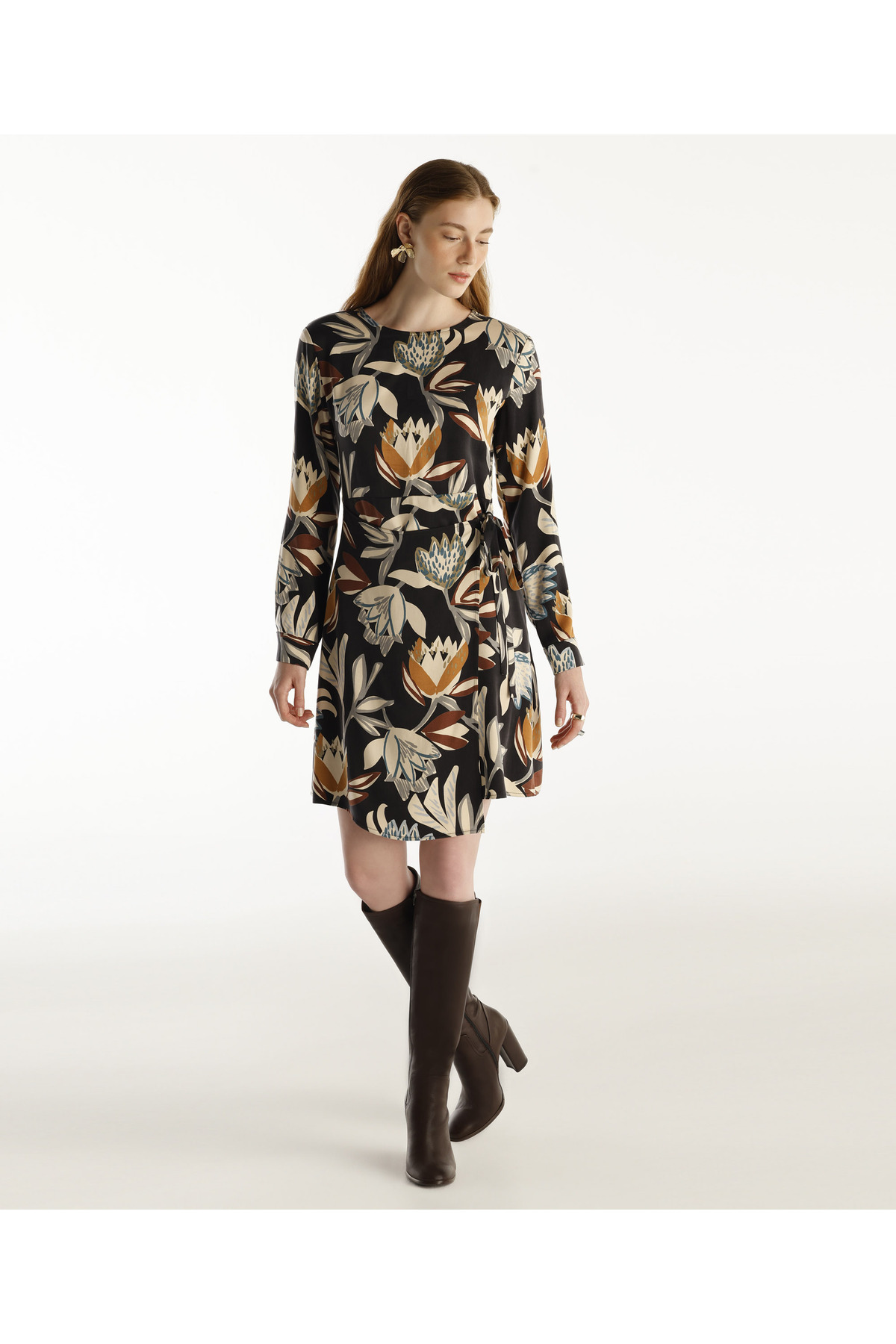 Pensli Uzun Kollu Yakası Fermuarlı Elbise Pensli Uzun Kollu Yakası Fermuarlı Elbise 24KKEL7013 44