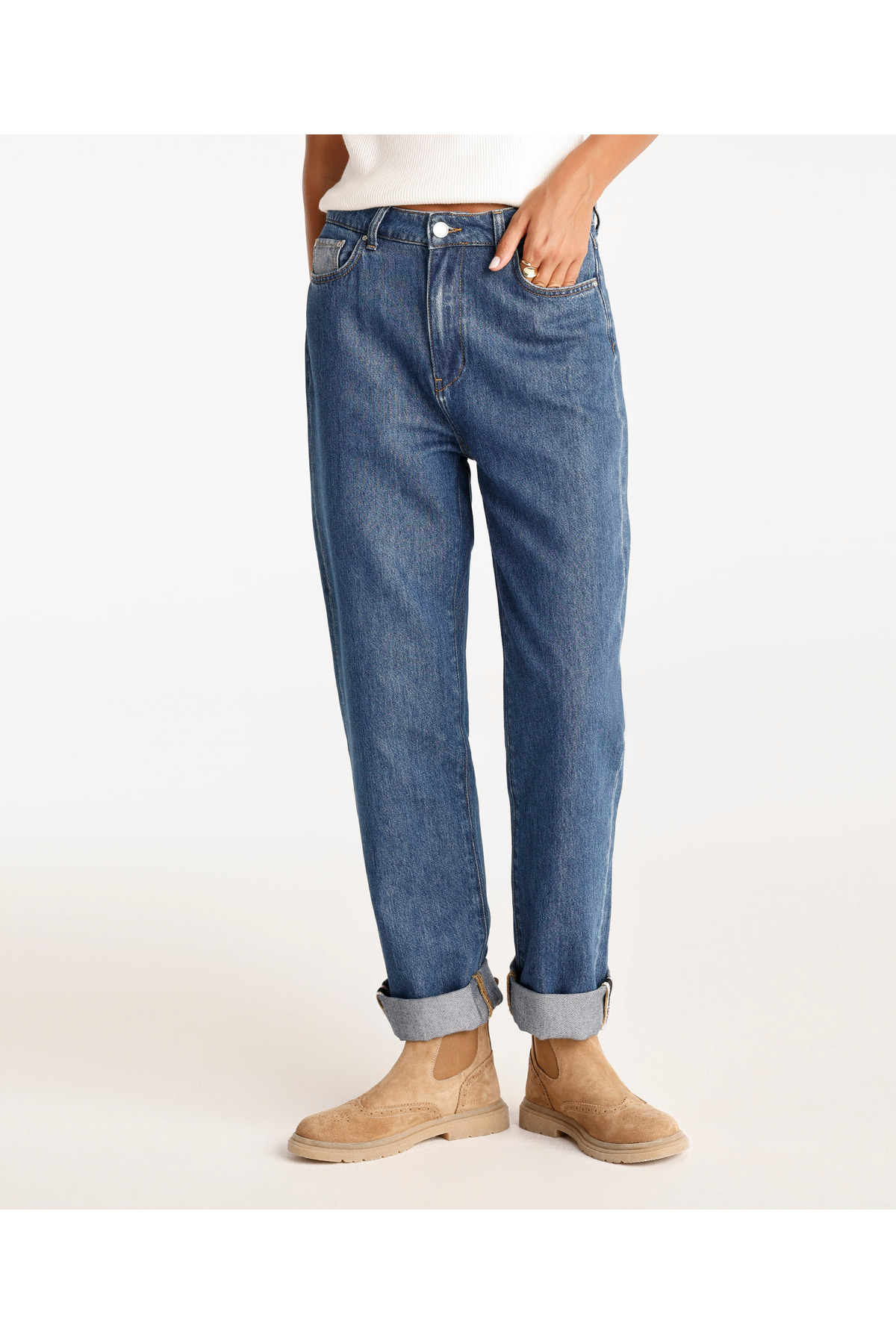 Paça Katlamalı Yüksek Belli Düz Paça Pantolon Paça Katlamalı Yüksek Belli Düz Paça Pantolon 24KKPN3100 44