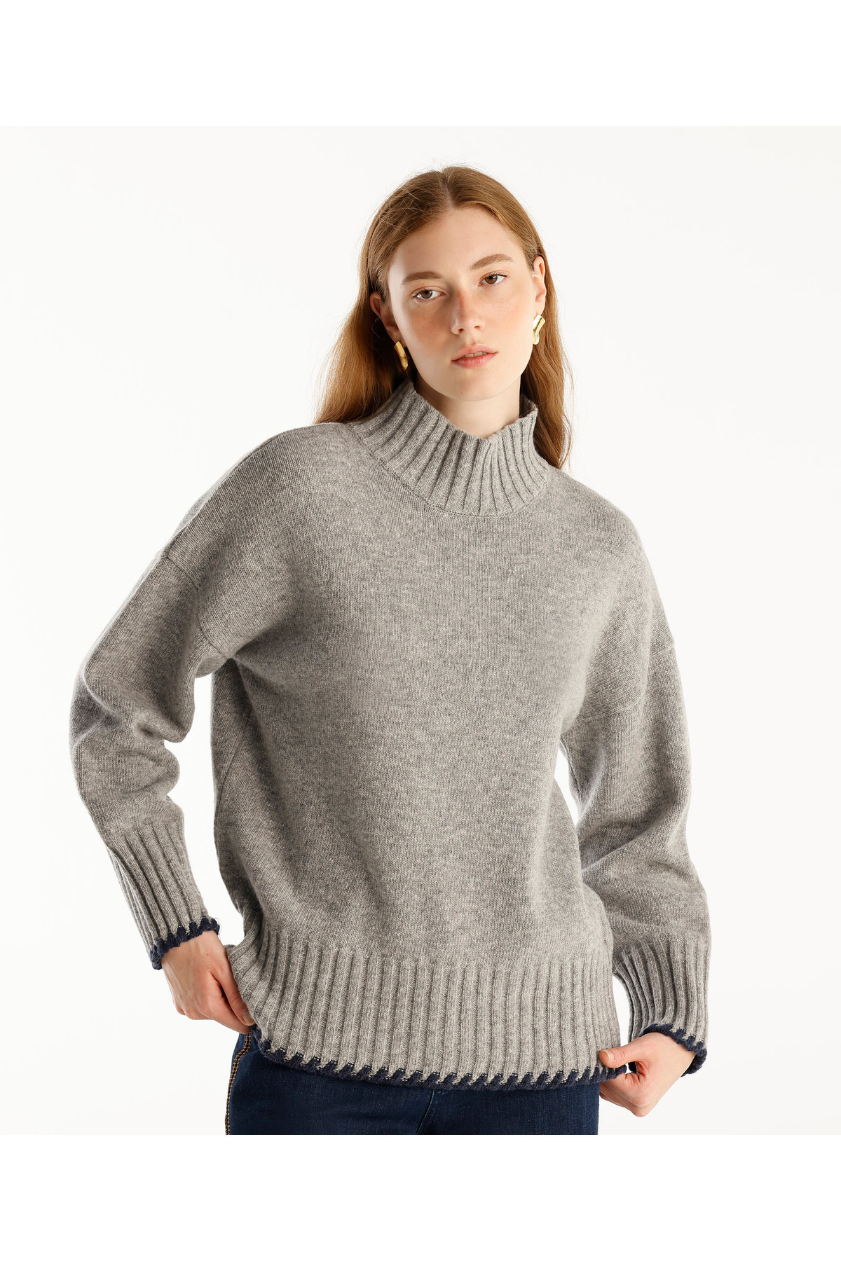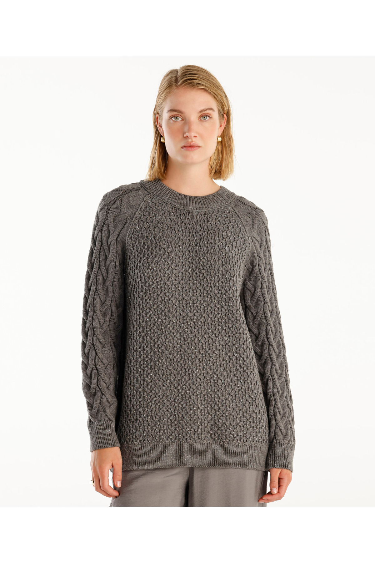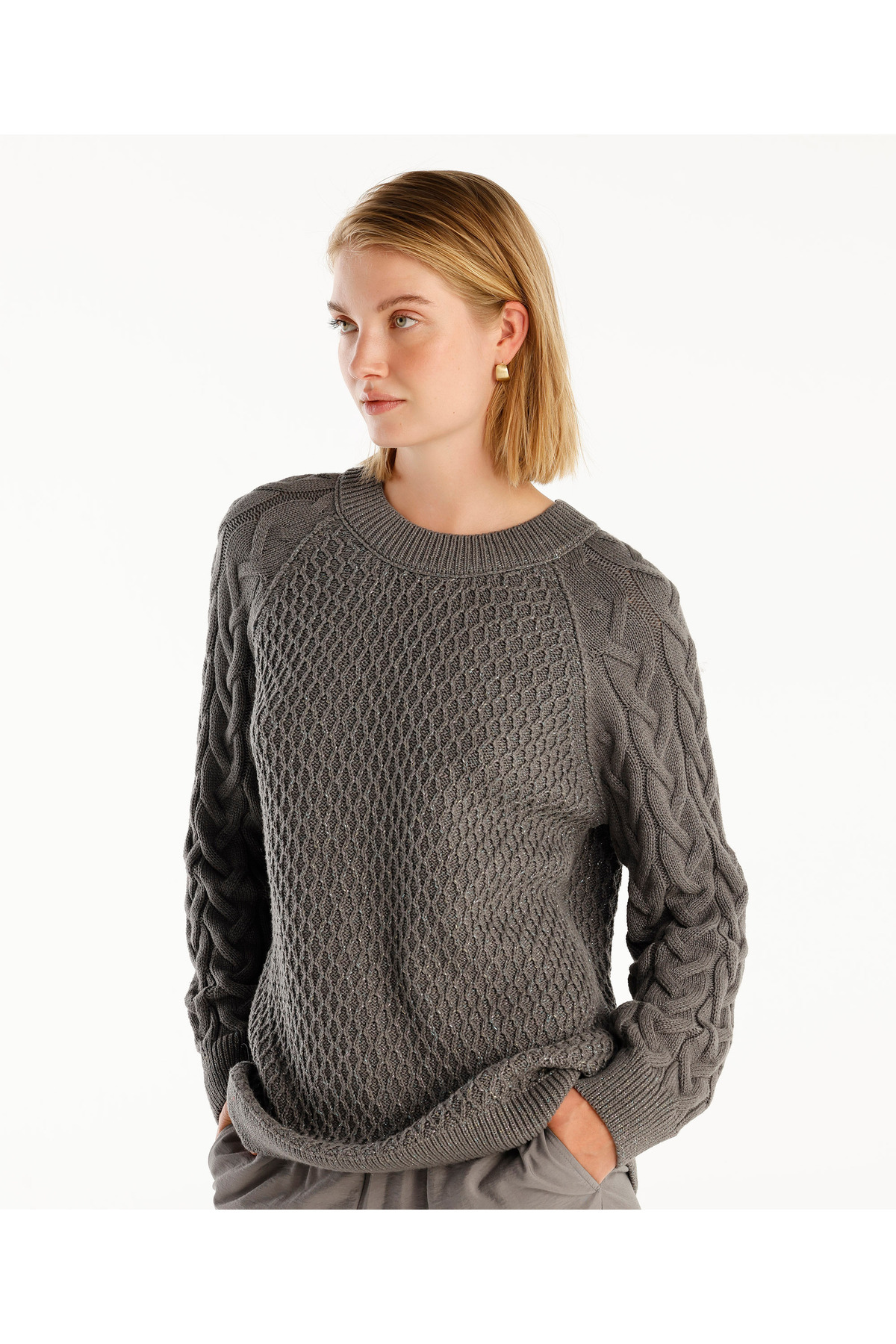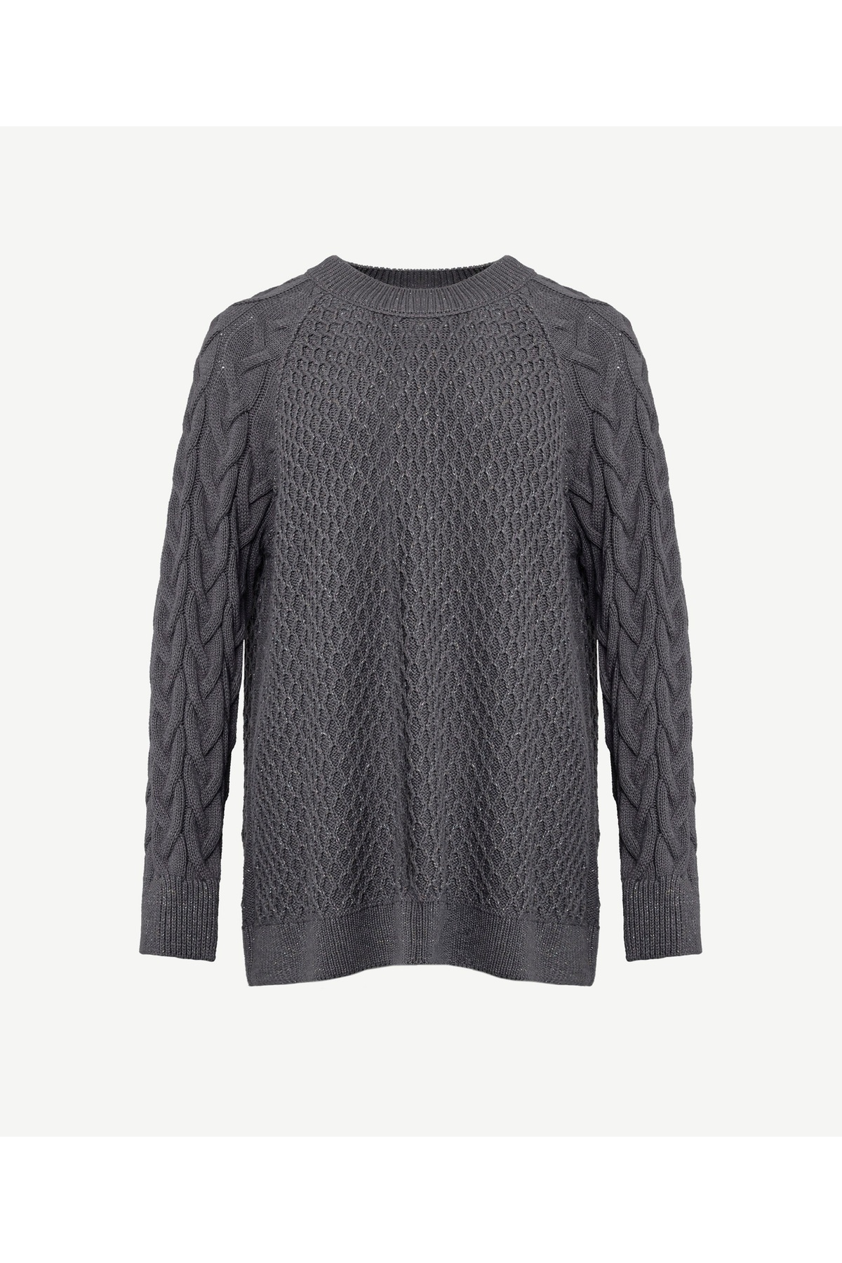 Bisiklet Yakalı Simli Örgülü Kazak Bisiklet Yakalı Simli Örgülü Kazak 24KKTR2028 XL