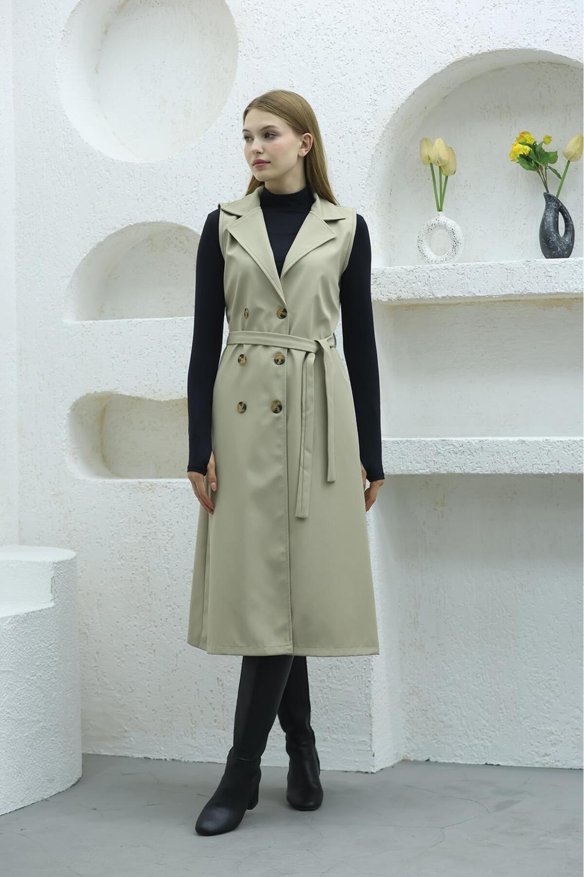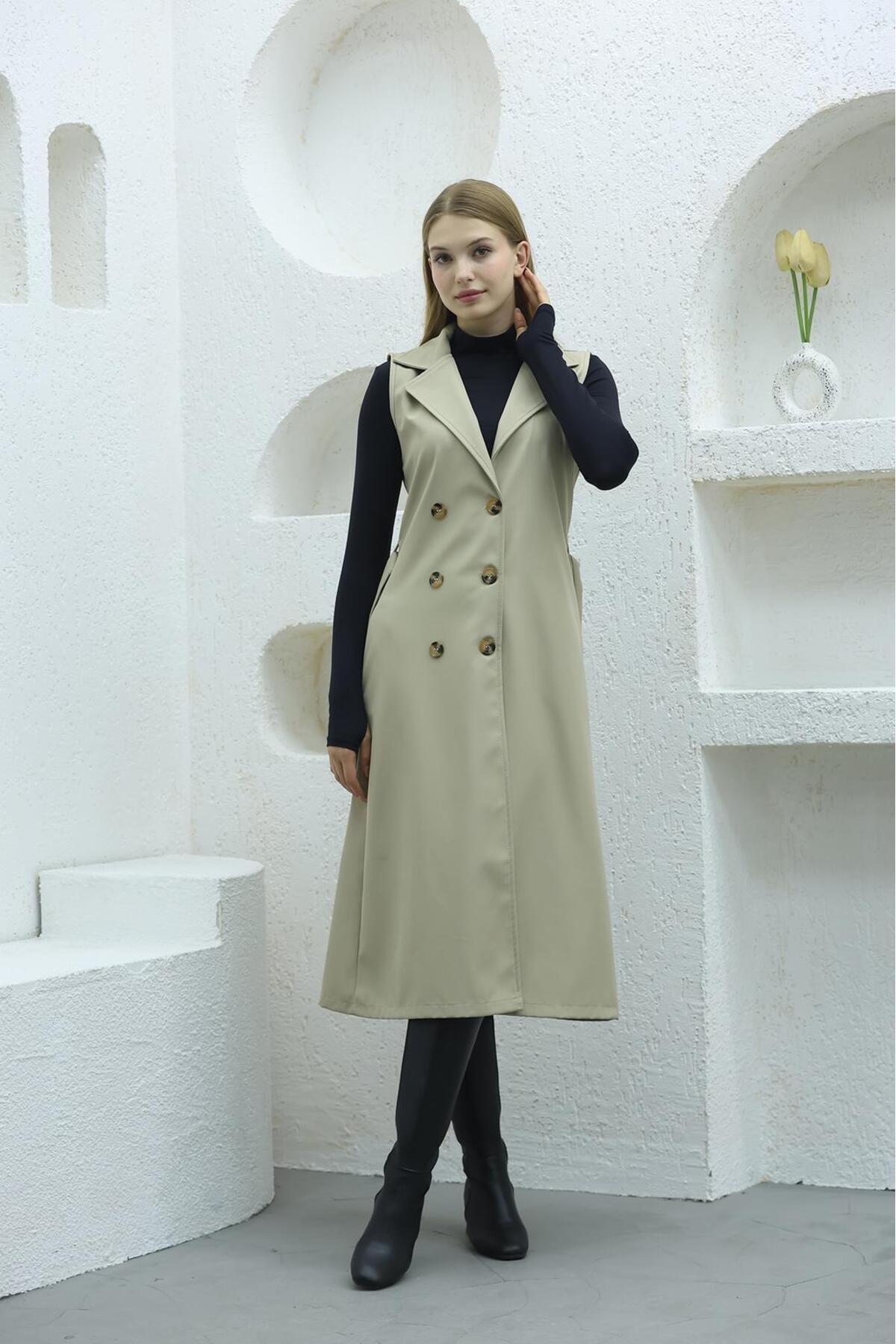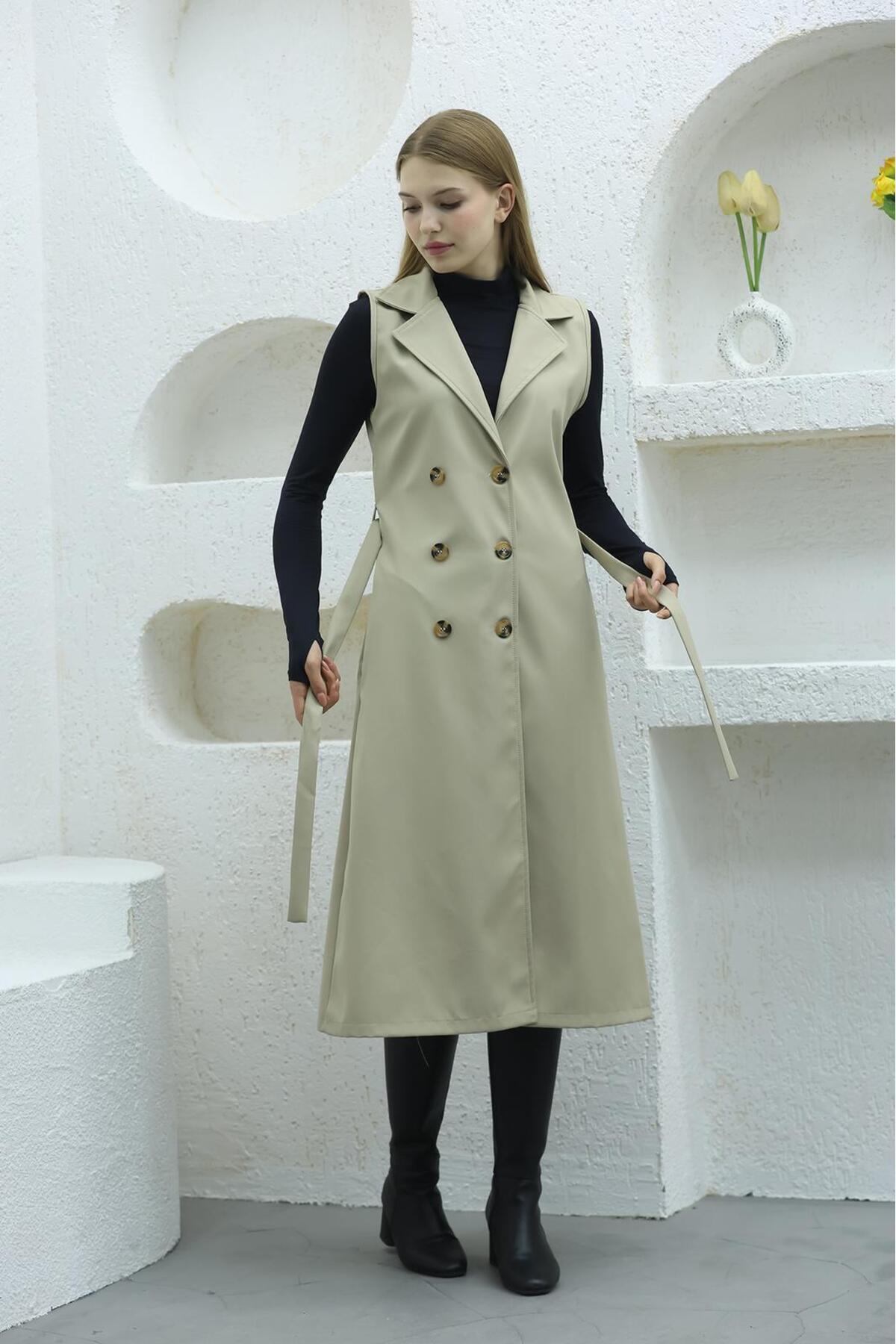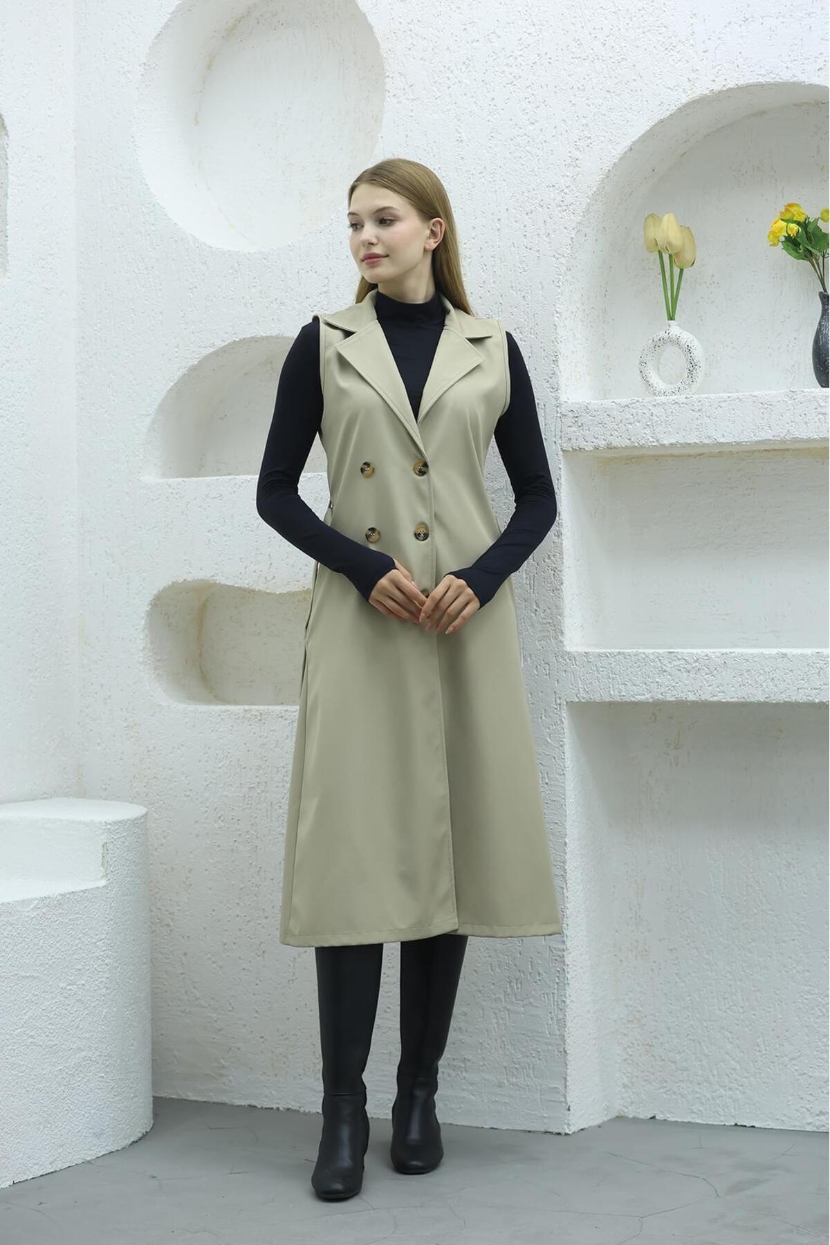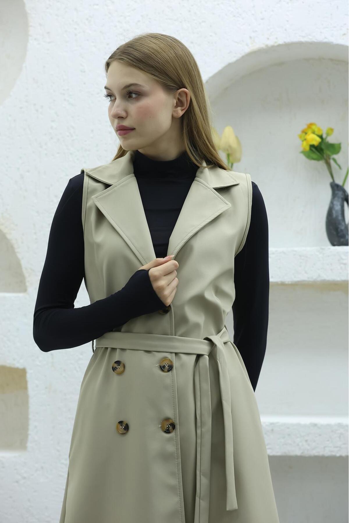 Su Geçirmez Bondit Uzun Yelek Bej Su Geçirmez Bondit Uzun Yelek Bej QBZ001K000115-A 46