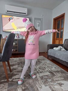 Kız Çocuk Elbise Gökkuşağı Üstünde Kedi Desenli Bere Ve Atkılı 3'lü Takım Kız Çocuk Elbise Gökkuşağı Üstünde Kedi Desenli Bere Ve Atkılı 3'lü Takım 6050 8-9 Yaş