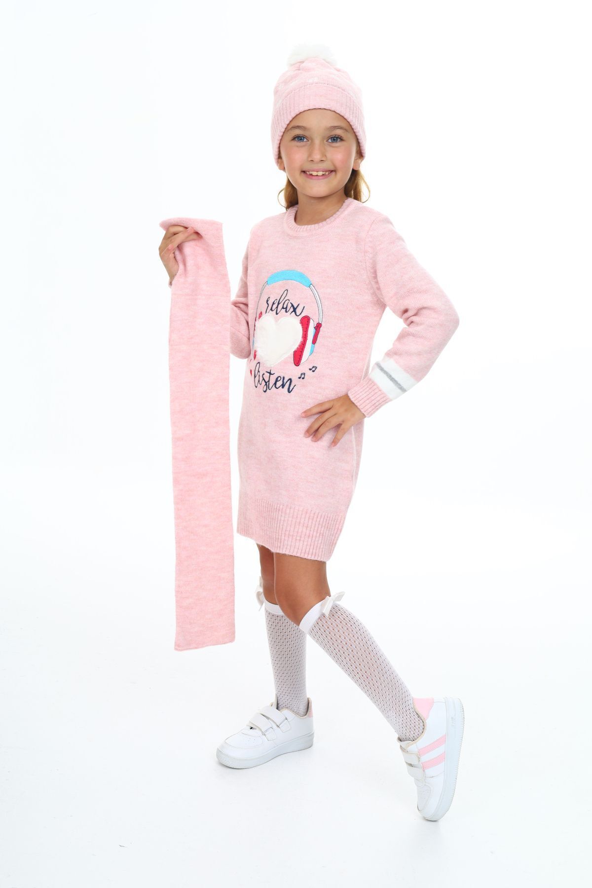 Kız Çocuk Kışlık Elbise Kalp Üstü Kulaklık Işlemeli Bere Ve Atkılı 3'lü Takım Kız Çocuk Kışlık Elbise Kalp Üstü Kulaklık Işlemeli Bere Ve Atkılı 3'lü Takım 6032 8-9 Yaş
