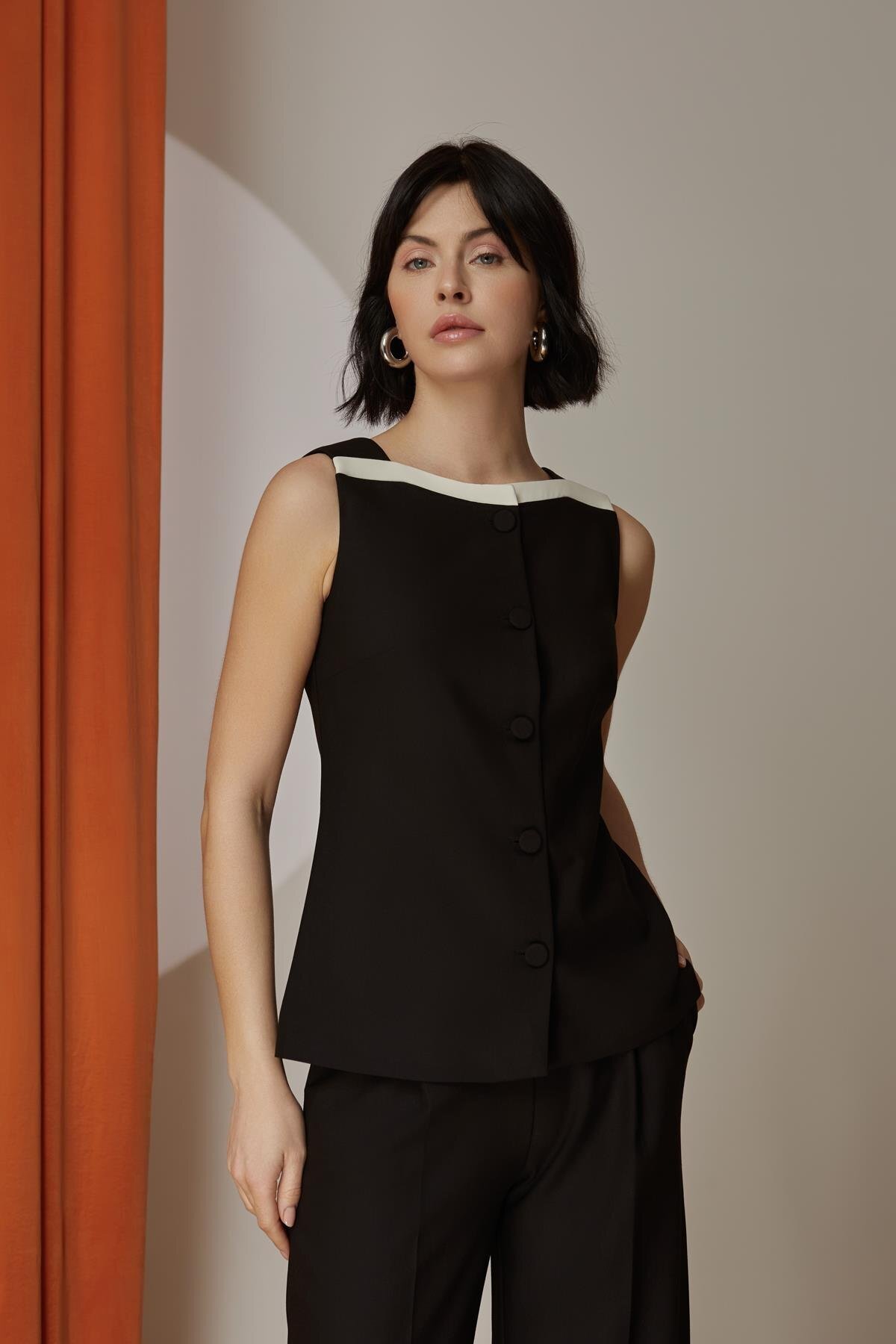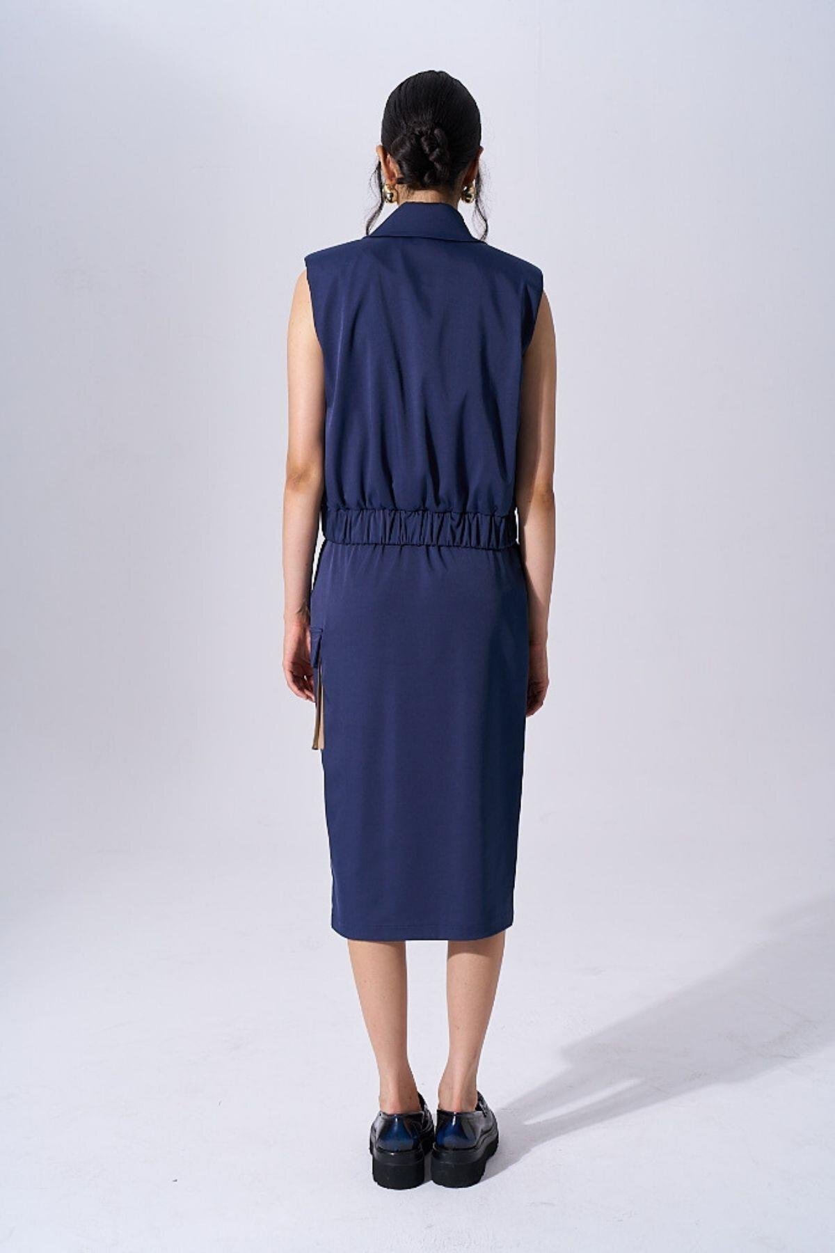 Kadın Düğme Kapamalı Kolsuz Cep Detaylı Lacivert Yelek NAAR91706-LACİVERT Kadın Düğme Kapamalı Kolsuz Cep Detaylı Lacivert Yelek NAAR91706-LACİVERT 40