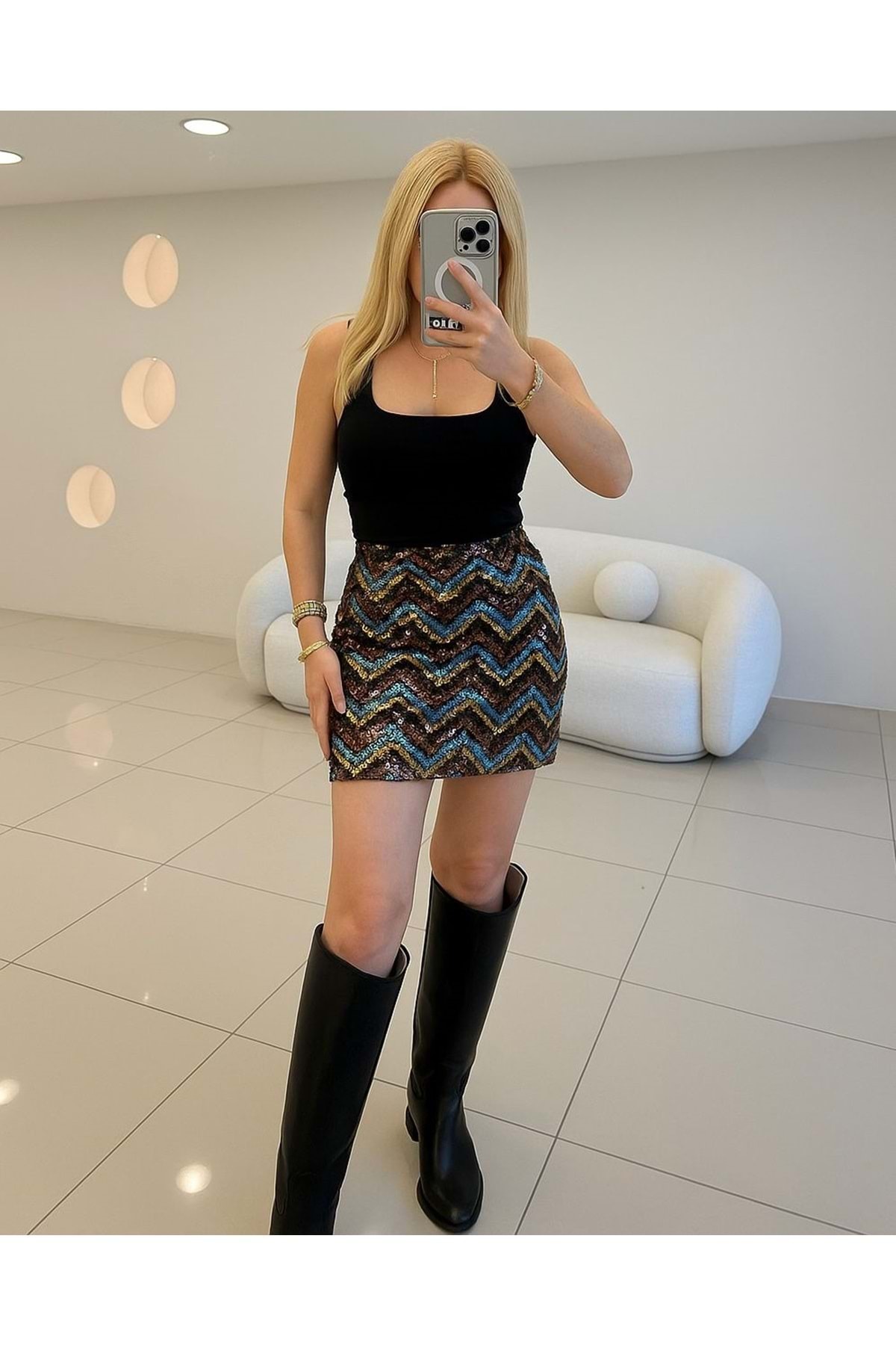 Özel Tasarım Abiye Parti Yılbaşı Pul Payetli Püsküllü Mini Etek Özel Tasarım Abiye Parti Yılbaşı Pul Payetli Püsküllü Mini Etek AH101 2XL