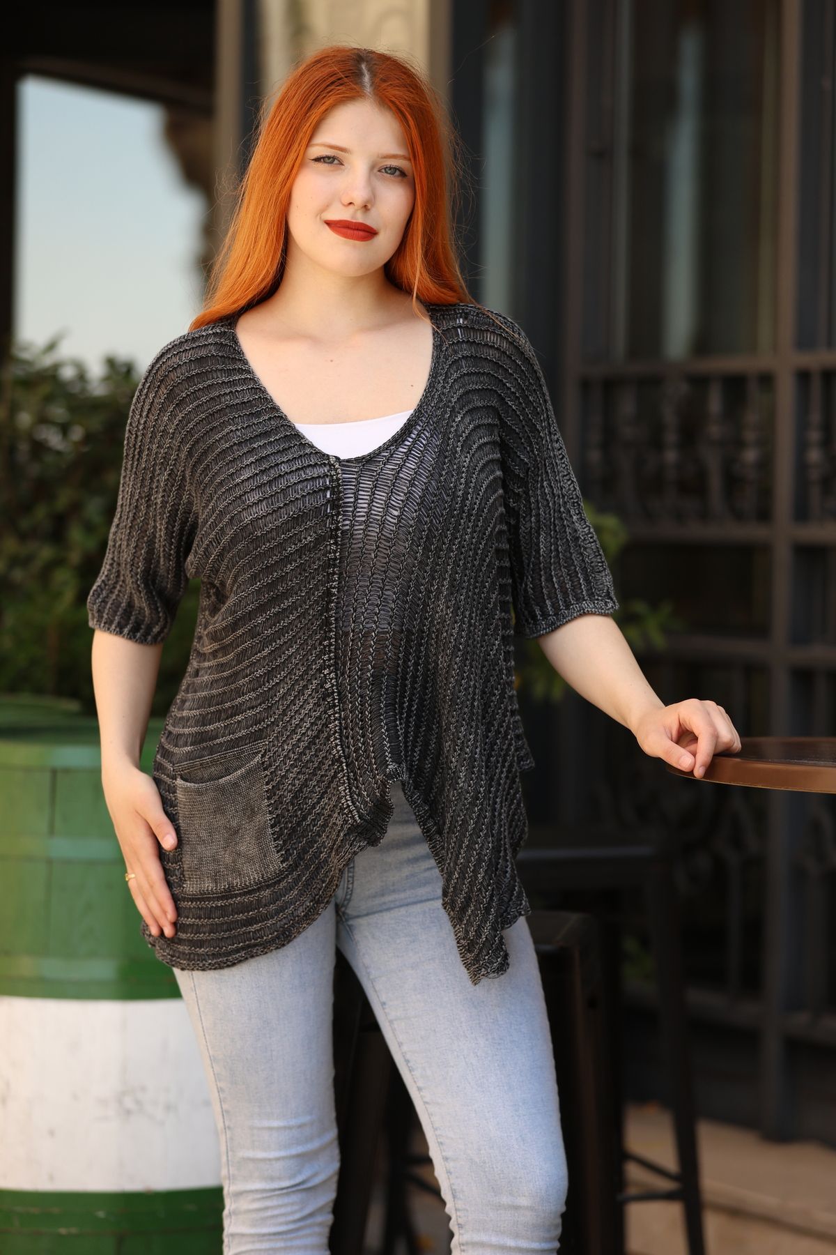Kadın Kiremit Yuvarlak Yakalı Eskitme Salaş Oversize Pamuklu Triko Bluz Kadın Kiremit Yuvarlak Yakalı Eskitme Salaş Oversize Pamuklu Triko Bluz 2599-SCHS Standart