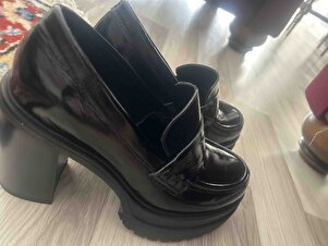 Kadın Siyah Kalın Topuklu Deri Maskülen Loafer 24WFD180916 Kadın Siyah Kalın Topuklu Deri Maskülen Loafer 24WFD180916 40