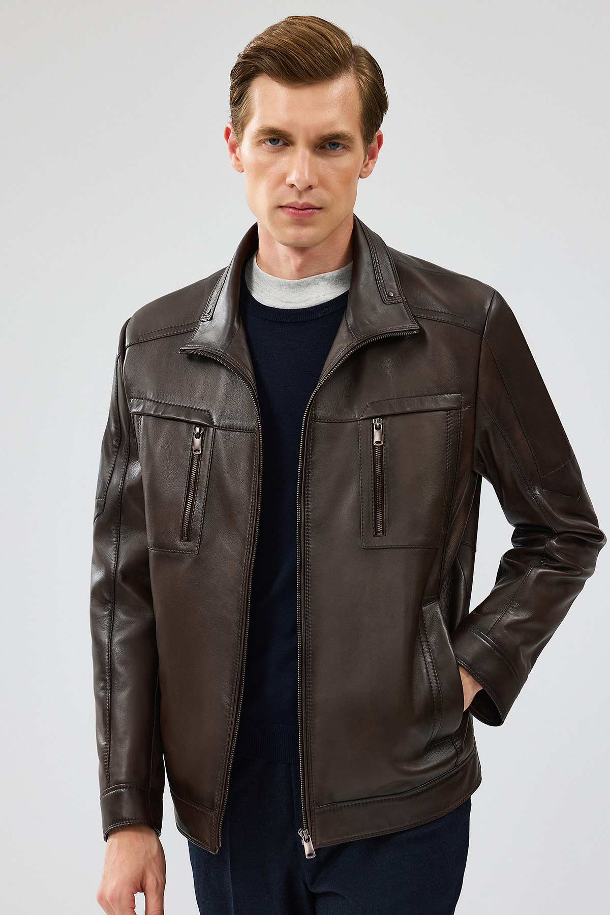 Wade Erkek Kahverengi Slim-Fit Deri Ceket 24WGF6462M2 Wade Erkek Kahverengi Slim-Fit Deri Ceket 24WGF6462M2 3XL