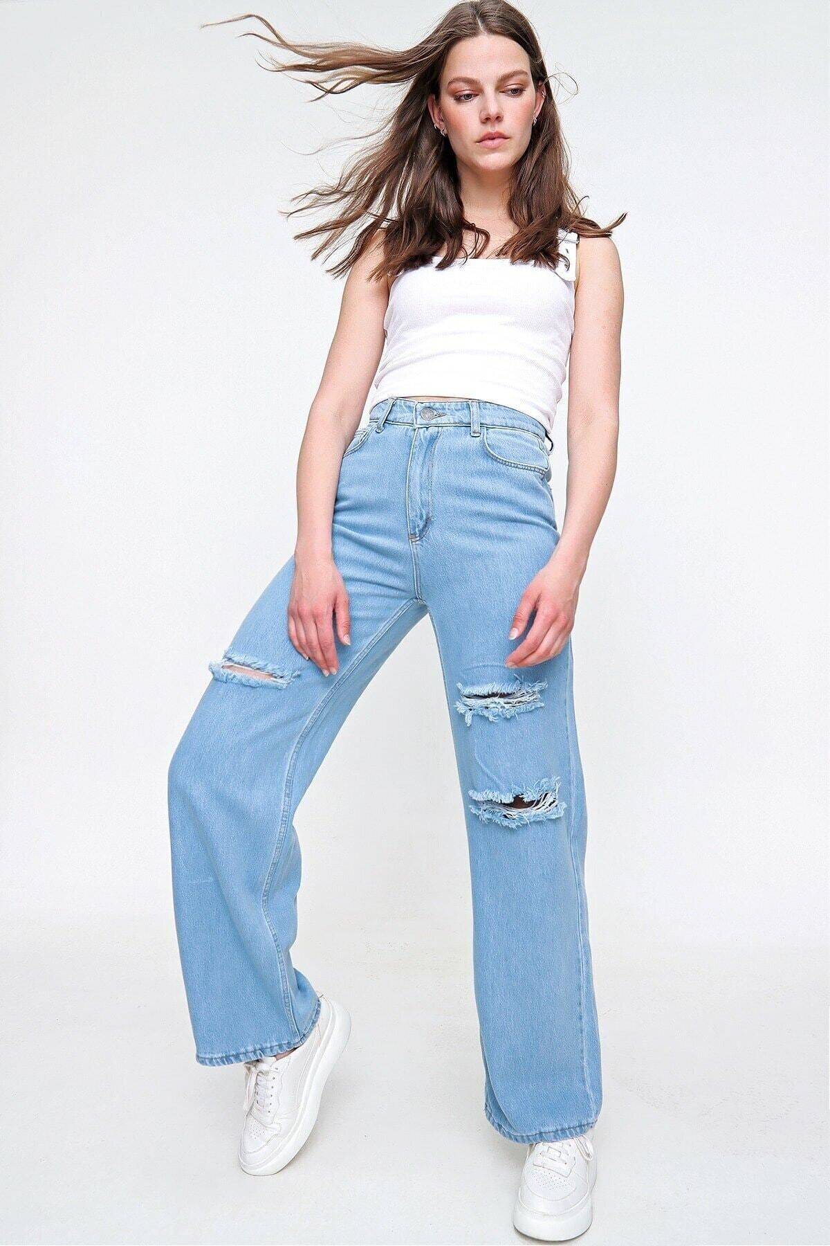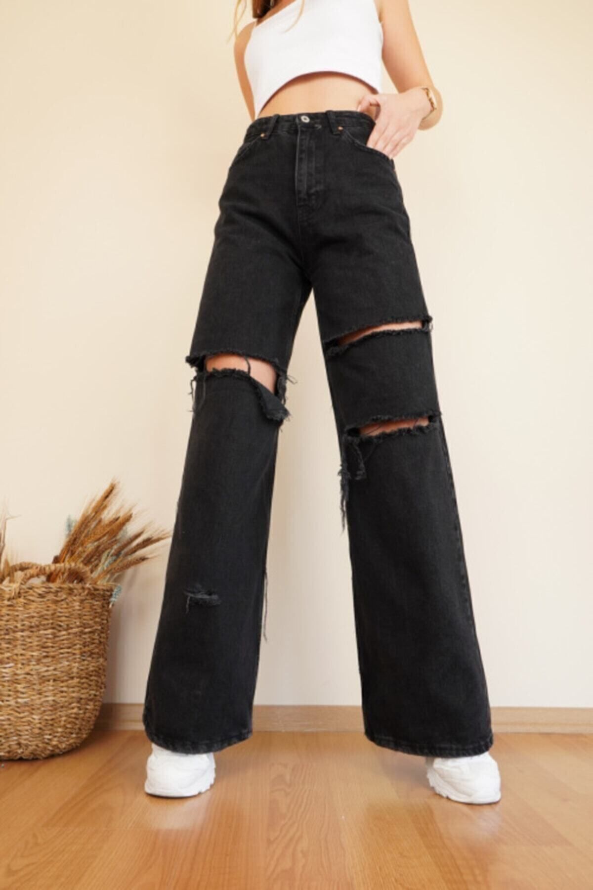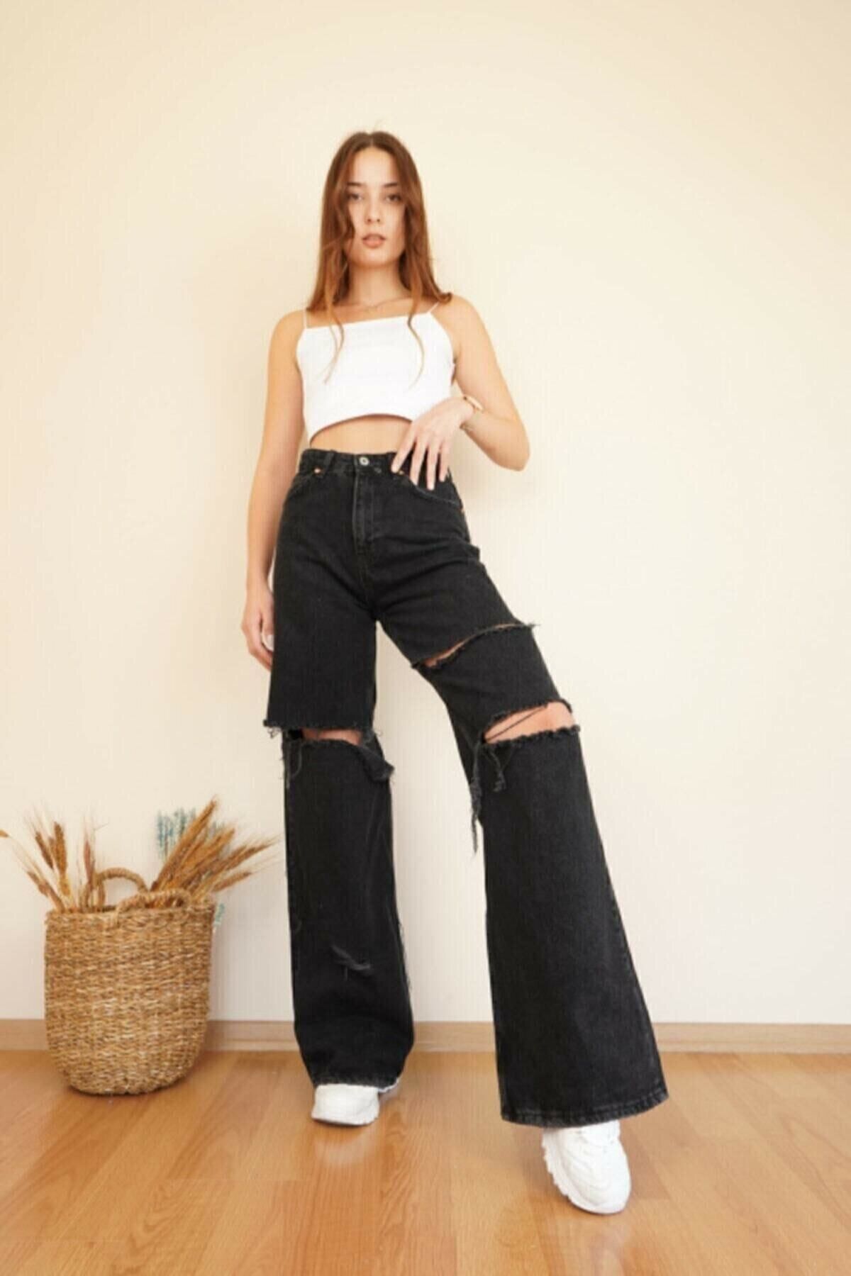 Tifany 90's Koyu Mavi Likralı Süper Yüksek Bel Kot Salaş Paça Jeans Palazzo Pantolon Tifany 90's Koyu Mavi Likralı Süper Yüksek Bel Kot Salaş Paça Jeans Palazzo Pantolon HSLSPACA-1534 34