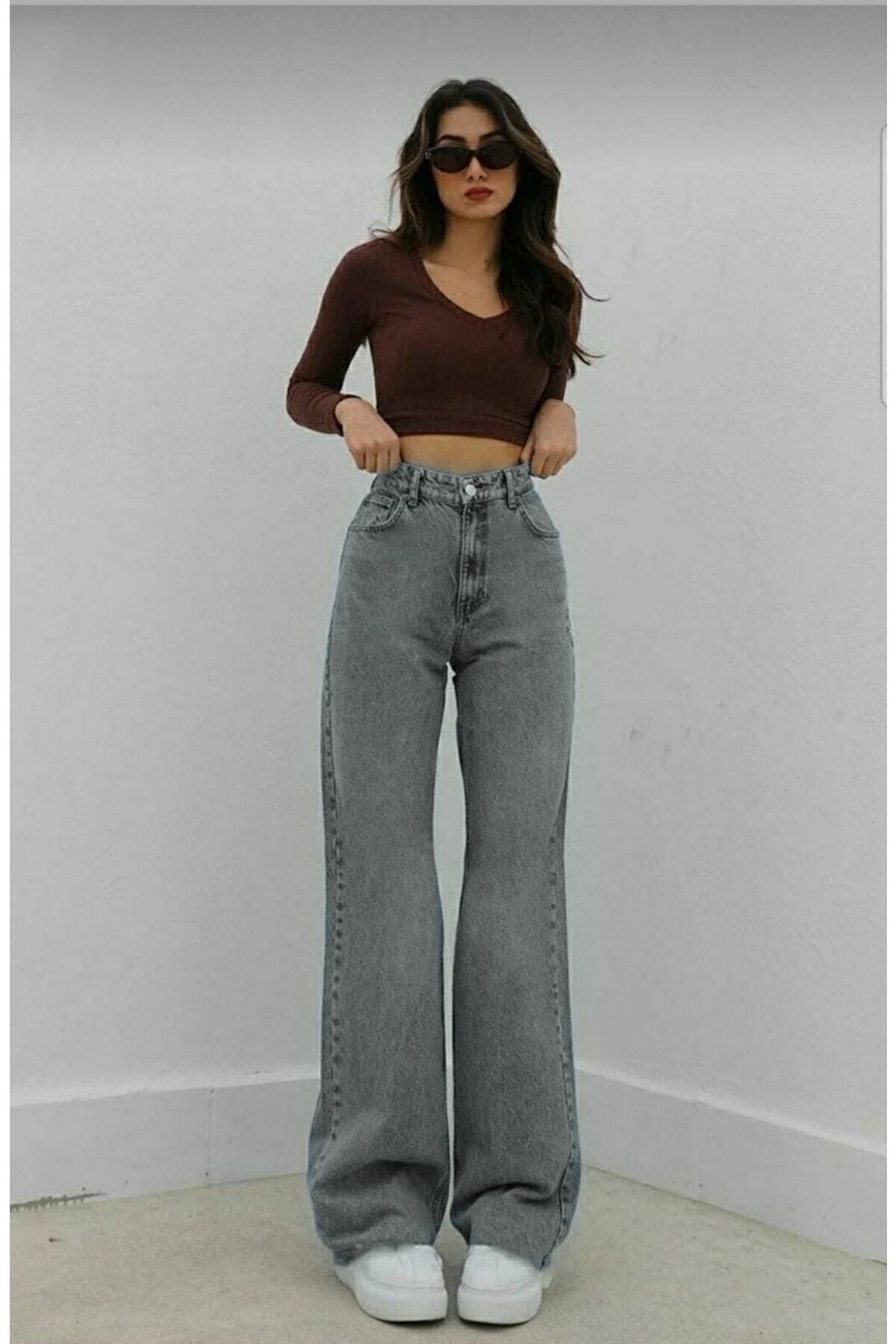 90's Koyu Mavi Likralı Süper Yüksek Bel Salaş Jeans Palazzo Pantolon. (SÜPER YÜKSEK) Wide Leg 90's Koyu Mavi Likralı Süper Yüksek Bel Salaş Jeans Palazzo Pantolon. (SÜPER YÜKSEK) Wide Leg HSLSPACA-1533 34