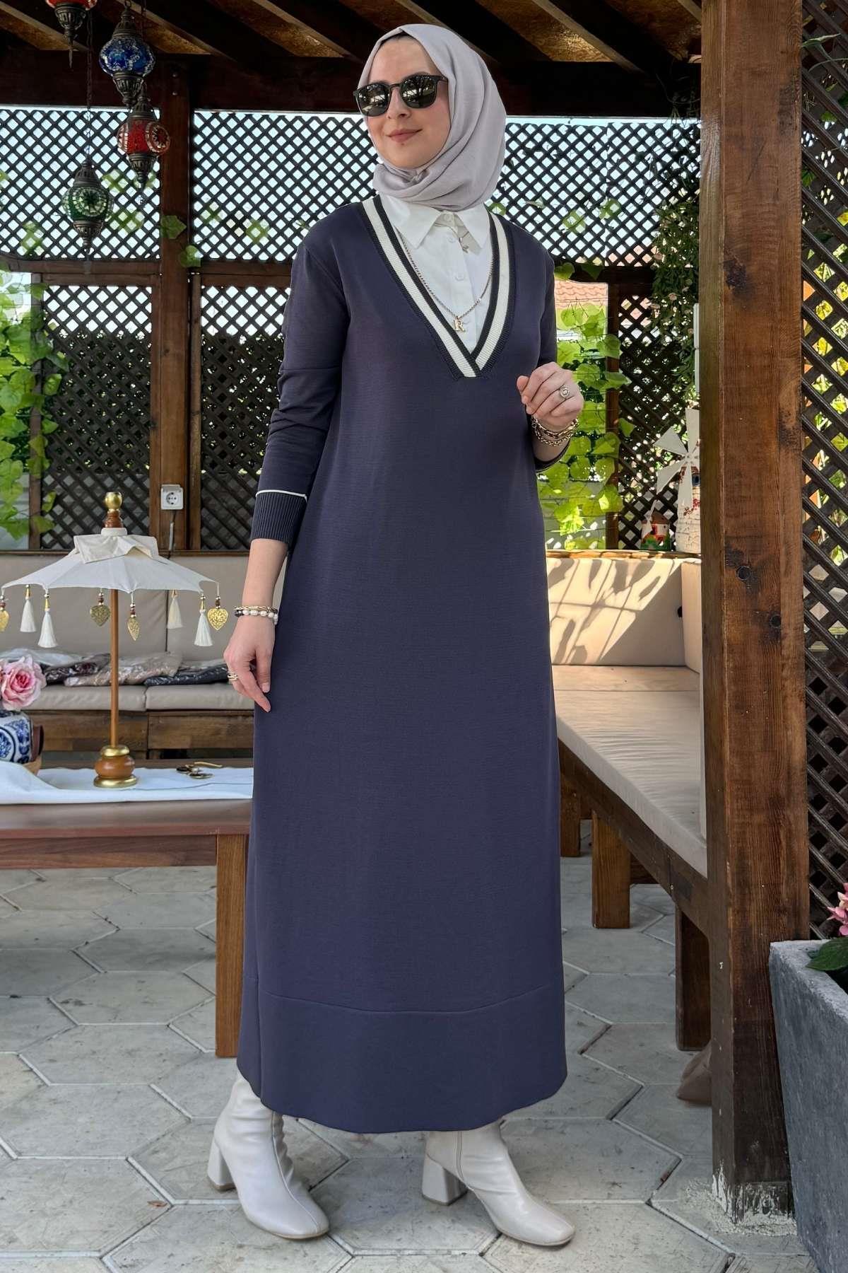 Eylül Gömlekli Triko Elbise Antrasit Eylül Gömlekli Triko Elbise Antrasit TX745529EB1000 تک سایز