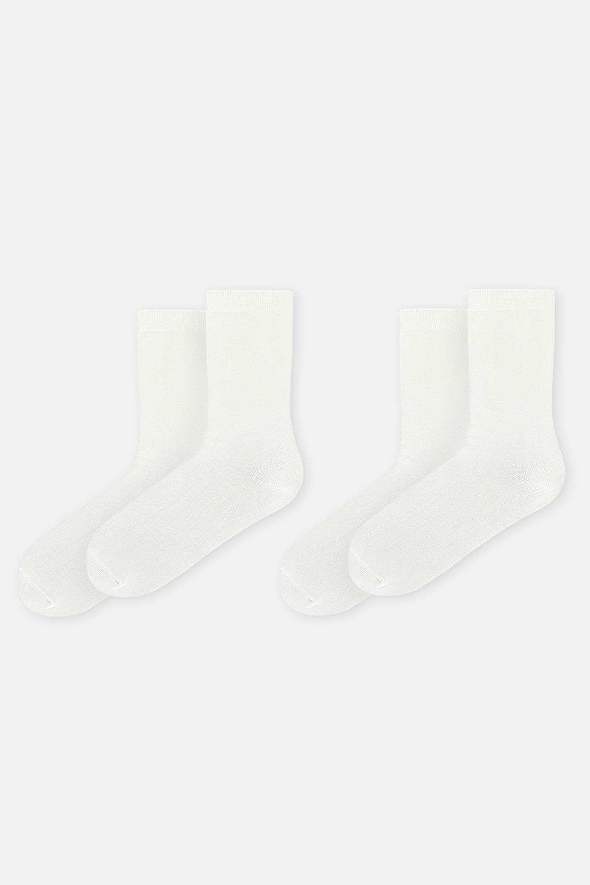Beyaz Erkek Çizgi Desenli Spor Çorap 2'Li Beyaz Erkek Çizgi Desenli Spor Çorap 2'Li 24SM56082UK_307 Standart