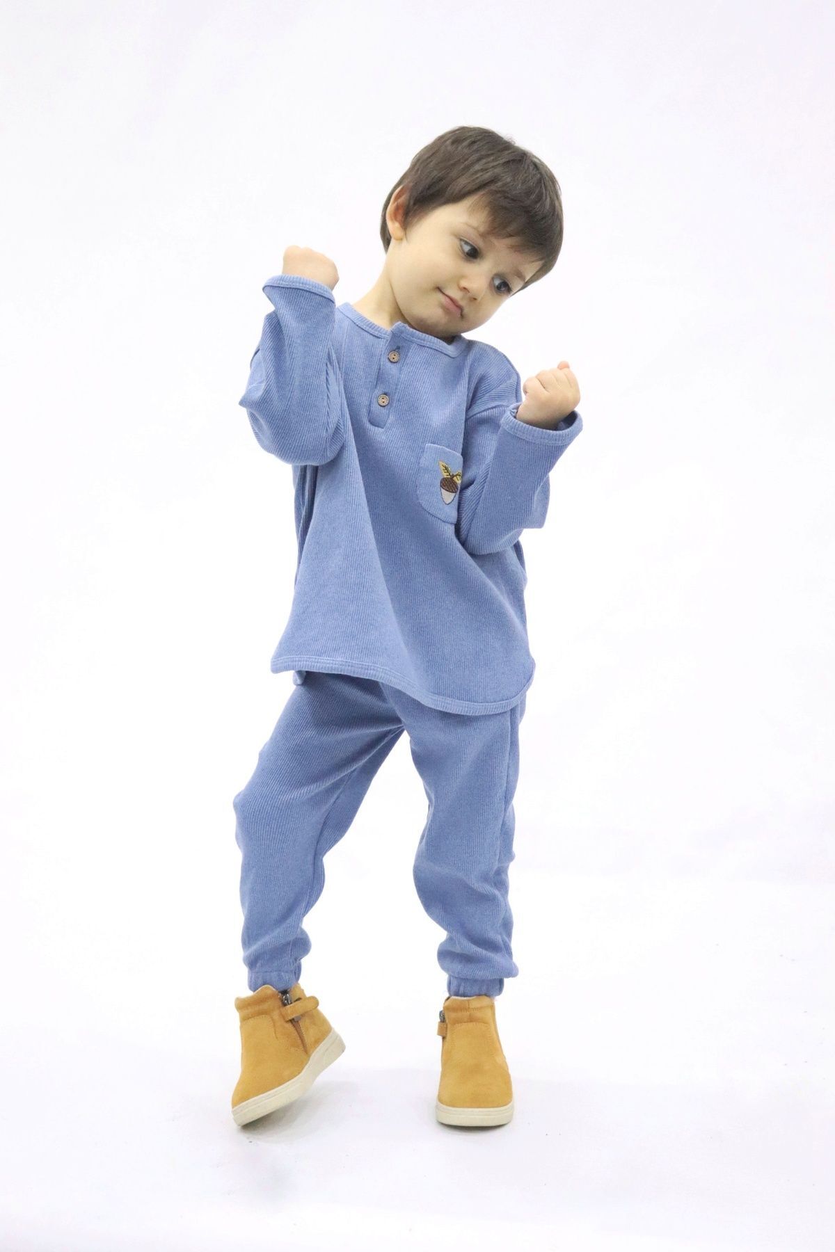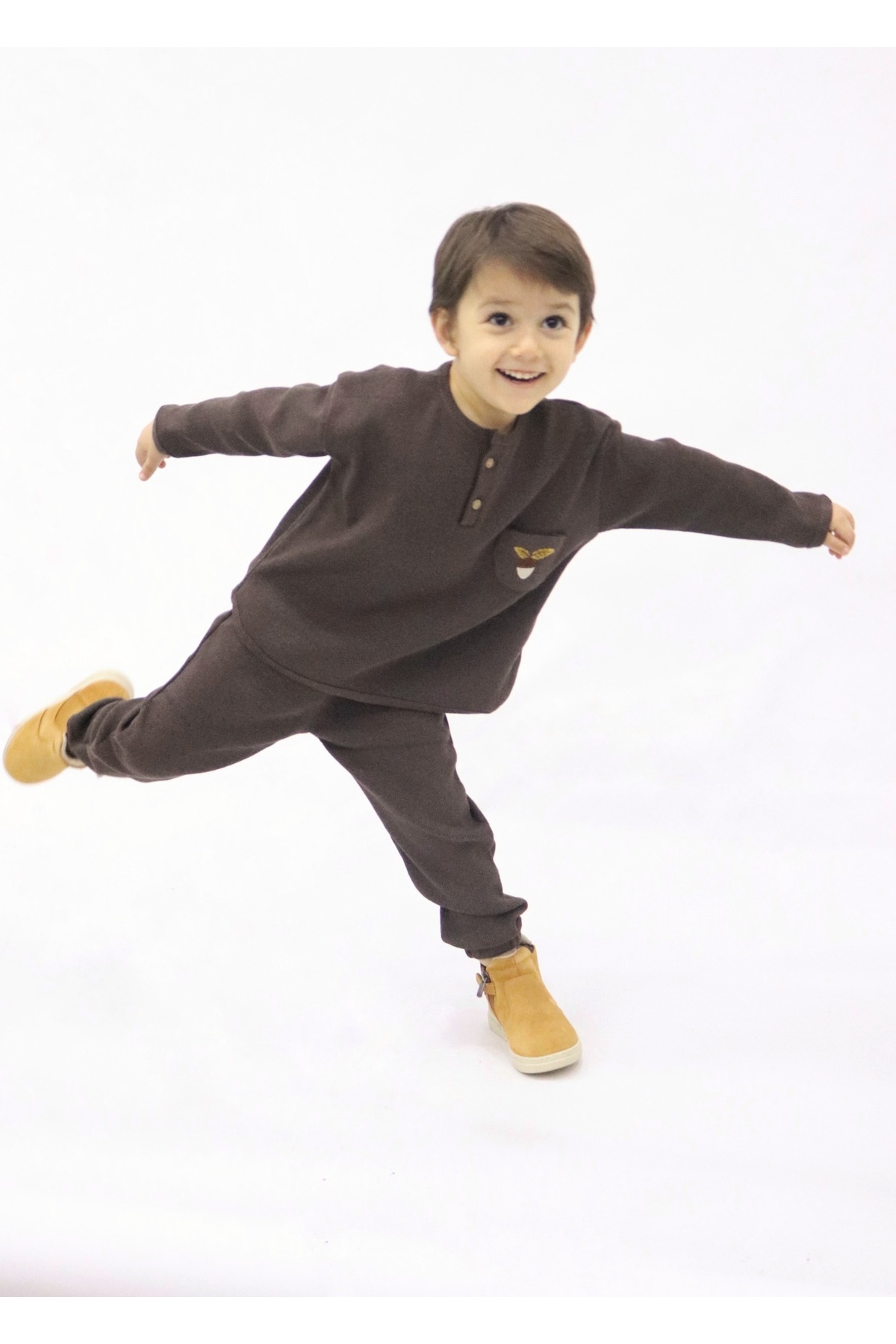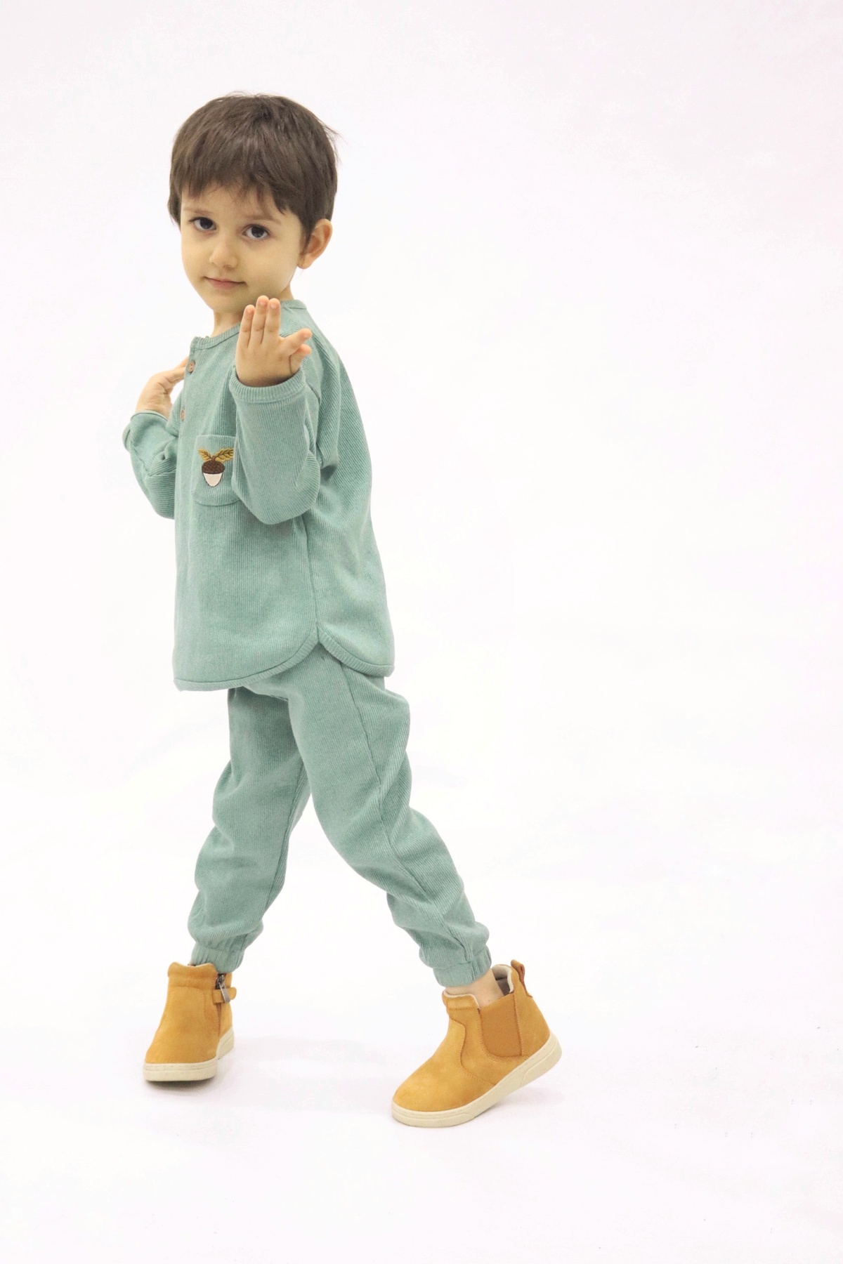 Fil Taş Rengi Sweatshirt Yeşil Eşofman Altı 2'li Takım TTYE0031 Fil Taş Rengi Sweatshirt Yeşil Eşofman Altı 2'li Takım TTYE0031 9-10 Yaş