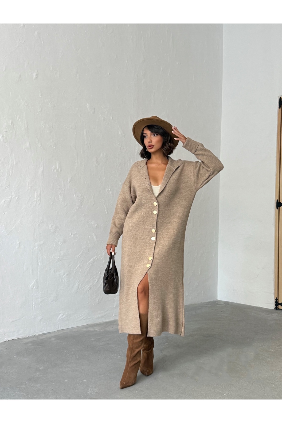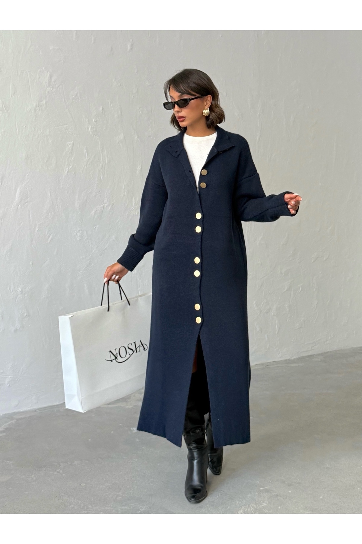 Gold Düğme Detaylı Maxi Boy Triko Hırka Gold Düğme Detaylı Maxi Boy Triko Hırka 00003254 Standart