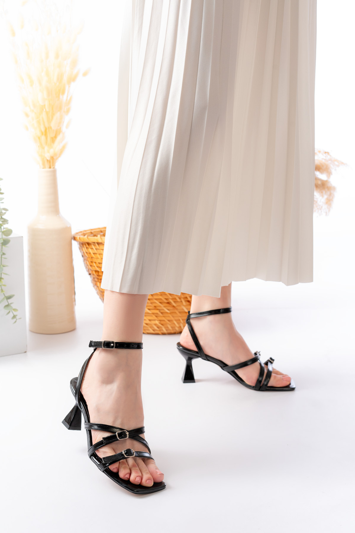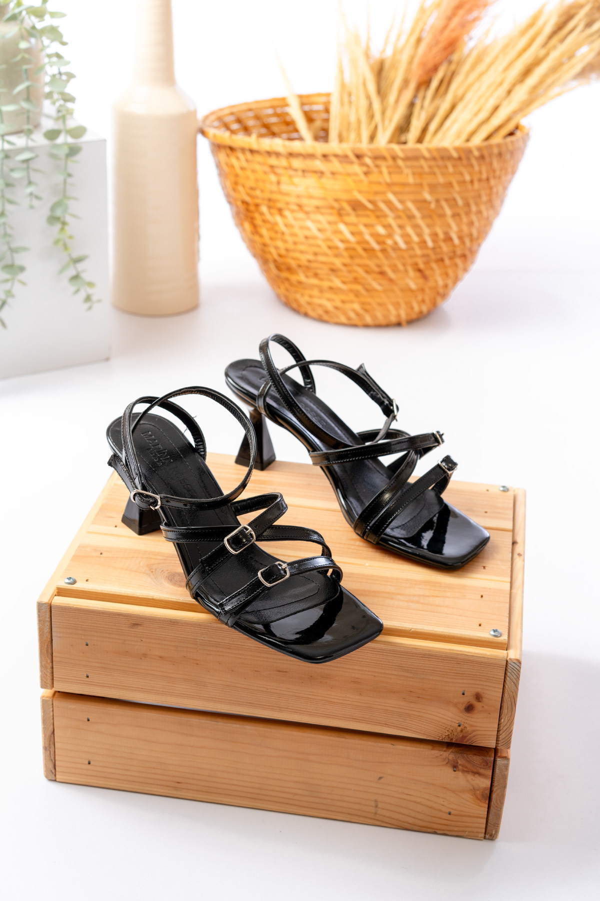 Kadın Adel Siyah Rugan Topuklu Sandalet Kadın Adel Siyah Rugan Topuklu Sandalet NVVL.1175 40