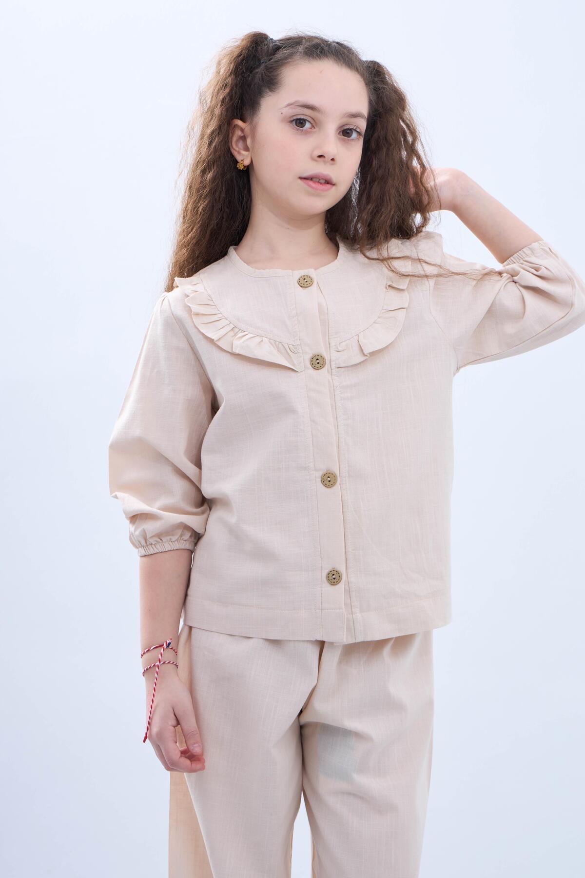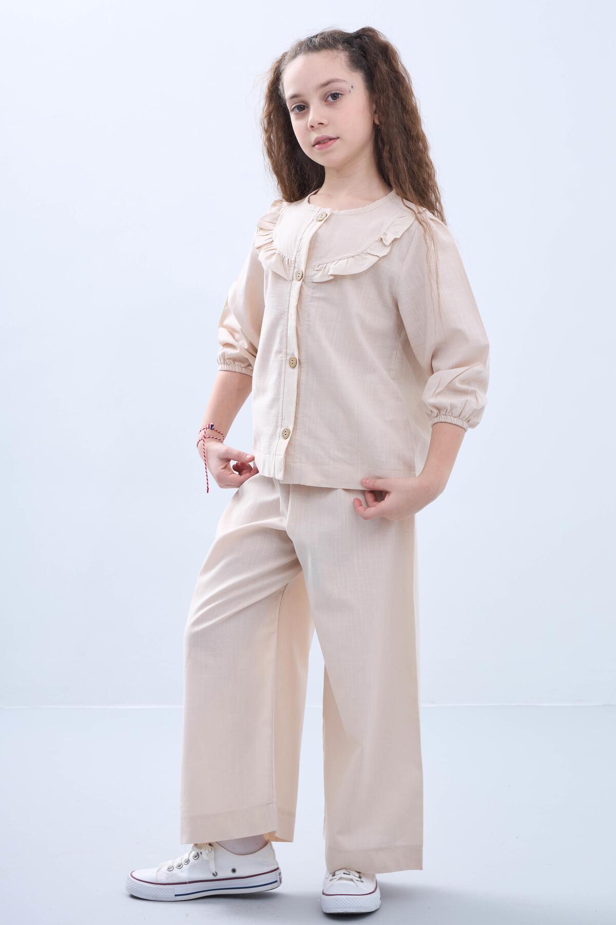 Bol Paça Mevsimlik Kız Çocuk Keten Takım Bej Bol Paça Mevsimlik Kız Çocuk Keten Takım Bej 20396 11-12 Yaş