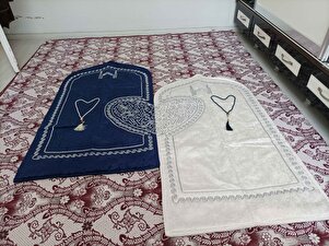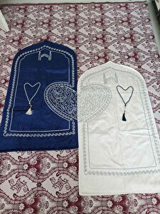 Kalpli Seccade Eşli Çift Seccade Tesbihli Gelin Damat Bohçası Hediyelik Çeyizlik Kalpli Seccade Eşli Çift Seccade Tesbihli Gelin Damat Bohçası Hediyelik Çeyizlik KALP*SECCADE 70 x 120