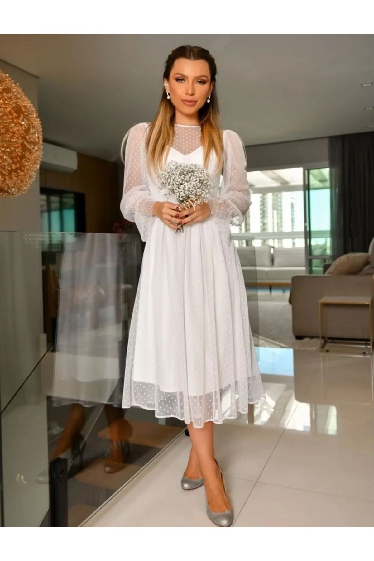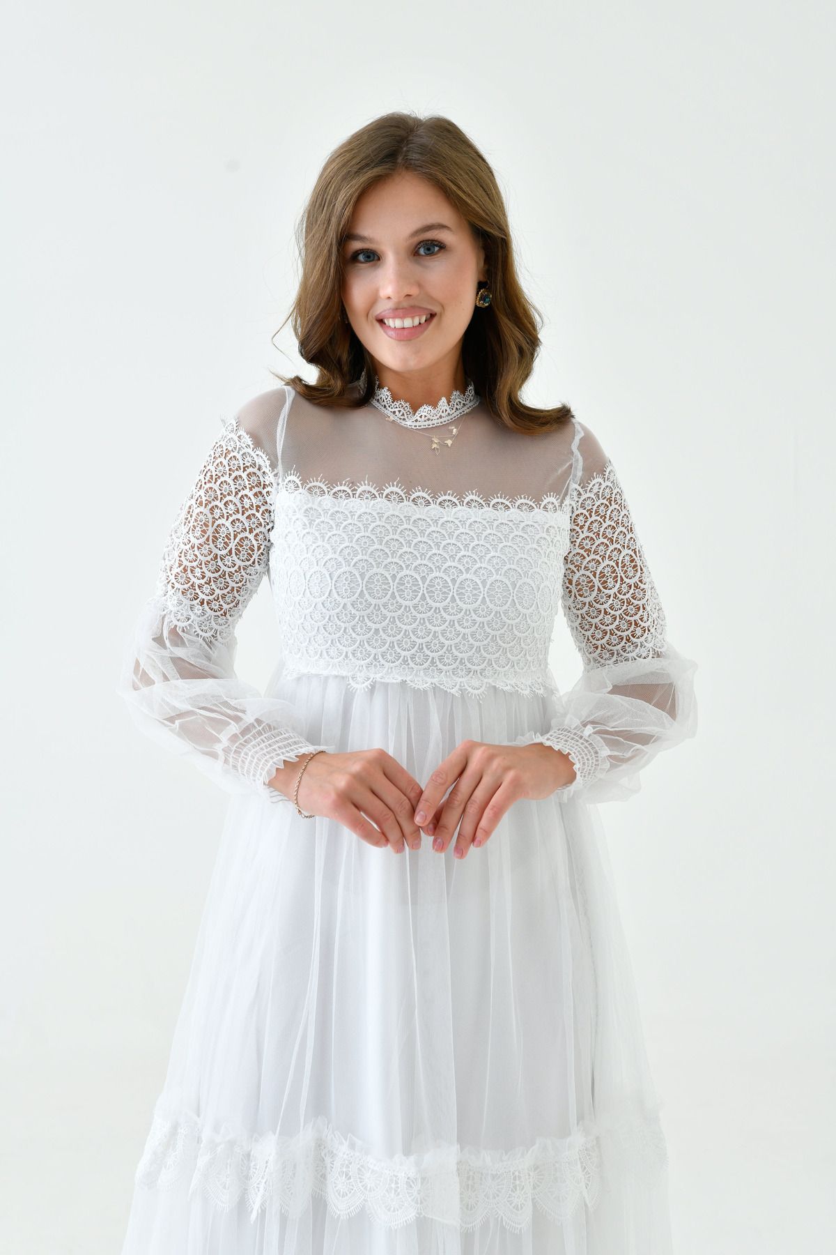 Kadın Tül Abiye Elbise - Güpürlü Uzun Tül Kollu Dantel Yaka Nikah Düğün Elbisesi 134 Kadın Tül Abiye Elbise - Güpürlü Uzun Tül Kollu Dantel Yaka Nikah Düğün Elbisesi 134 ZSH-SLN-134 2XL