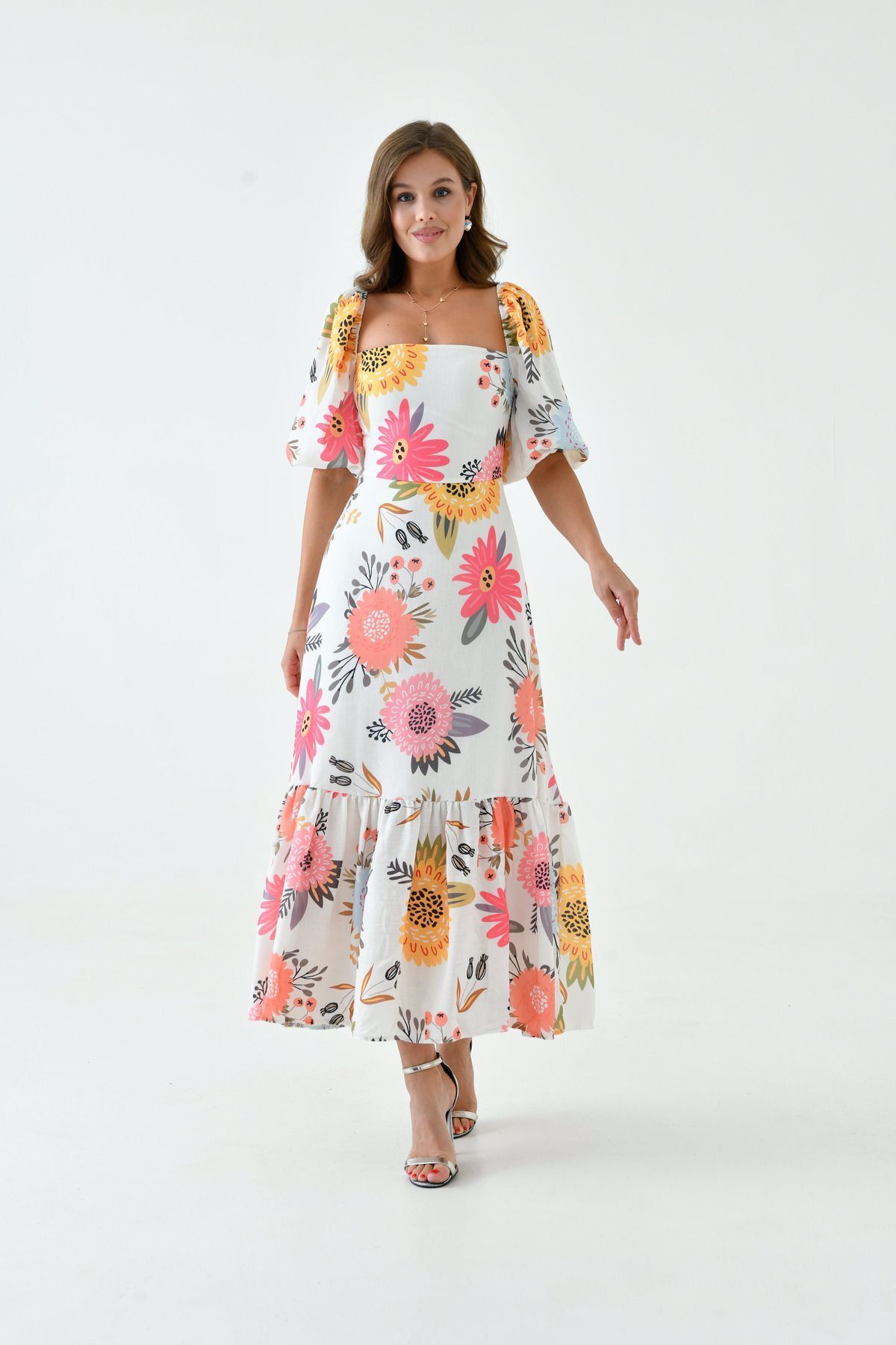 Keten Kumaş Çiçek Desenli Balon Kollu Kare Yaka Midi Boy Kadın Elbise 009 Keten Kumaş Çiçek Desenli Balon Kollu Kare Yaka Midi Boy Kadın Elbise 009 AMR-ETK-009 L