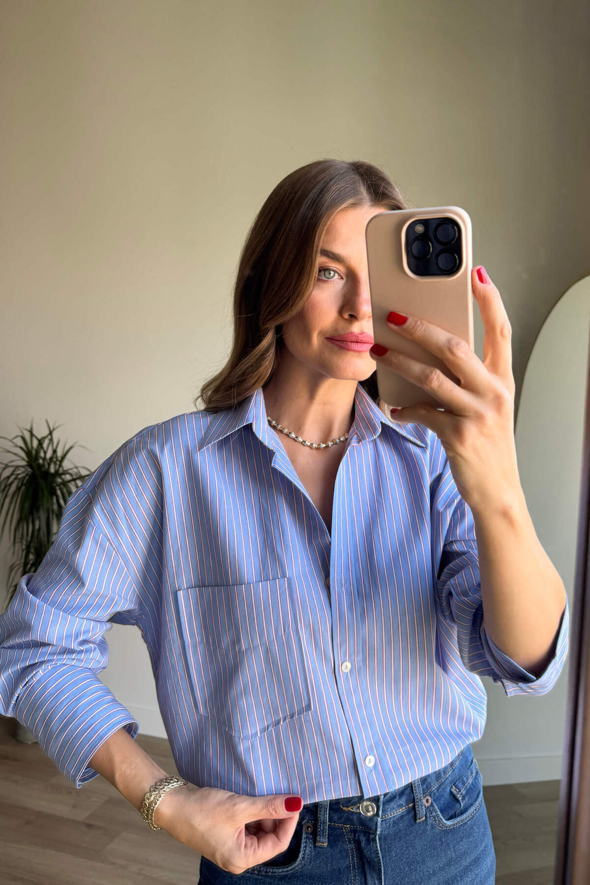 Oversize Gömlek Uzun Kollu Dokulu Klasik Yaka Düğmeli Oversize Gömlek Uzun Kollu Dokulu Klasik Yaka Düğmeli 5WAL60041IW 40
