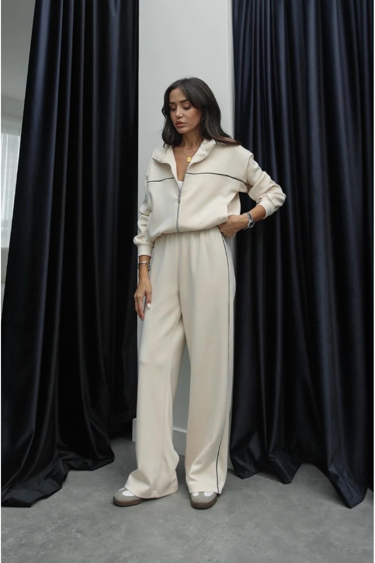 Kadın Bej Biye Detaylı Beli Lastikli Geniş Paça Eşofman Takım Kadın Bej Biye Detaylı Beli Lastikli Geniş Paça Eşofman Takım PACİSERİTDTYTAKM L