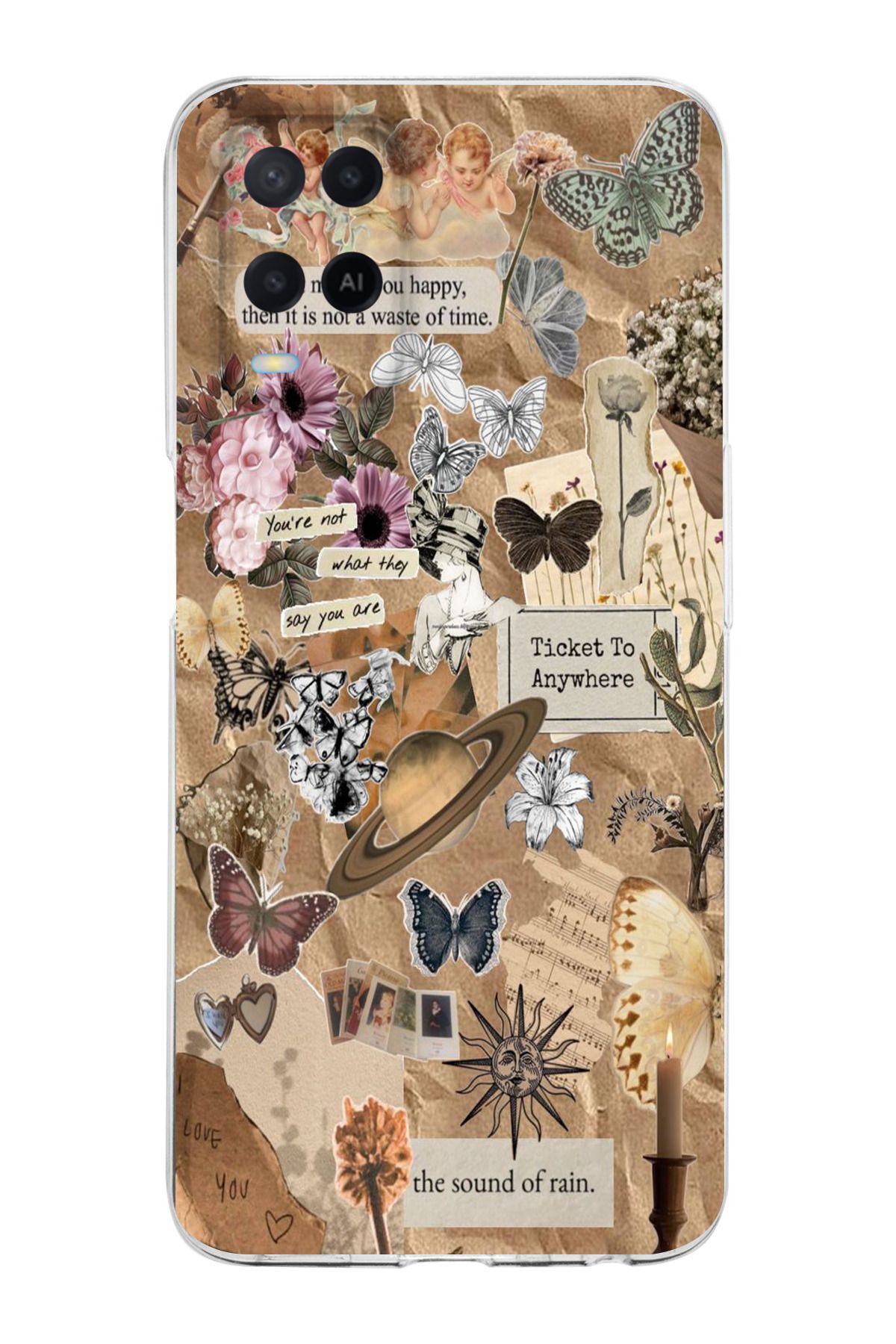 Oppo A54 Uyumlu Kelebek Kolaj Tasarımlı Baskılı Şeffaf Telefon Kılıfı Oppo A54 Uyumlu Kelebek Kolaj Tasarımlı Baskılı Şeffaf Telefon Kılıfı mooncsopa54001 تک سایز