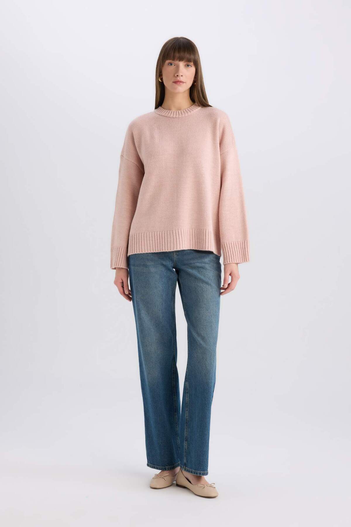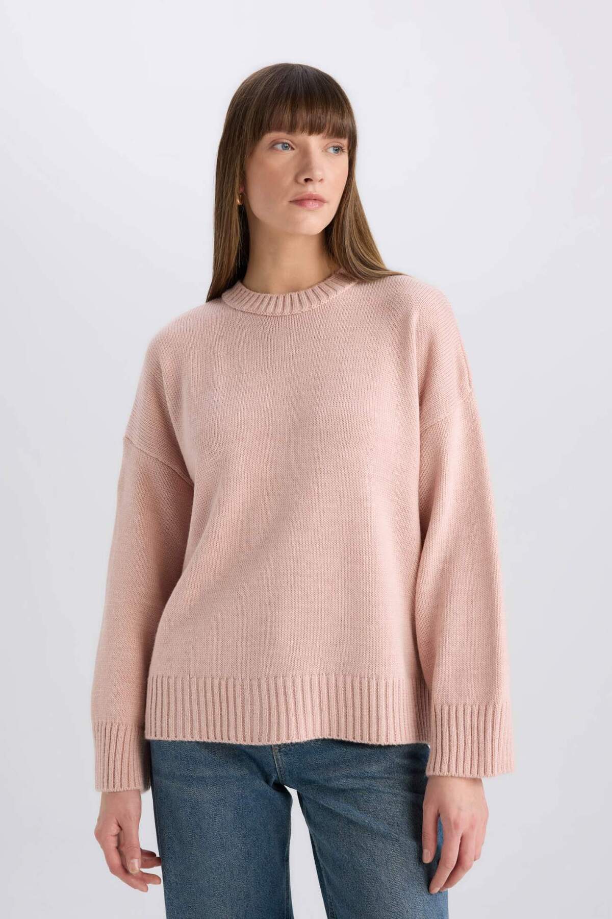 Oversize Geniş Kalıp Bisiklet Yaka Basic Düz Triko Kazak D0036AX24WN Oversize Geniş Kalıp Bisiklet Yaka Basic Düz Triko Kazak D0036AX24WN 2XL