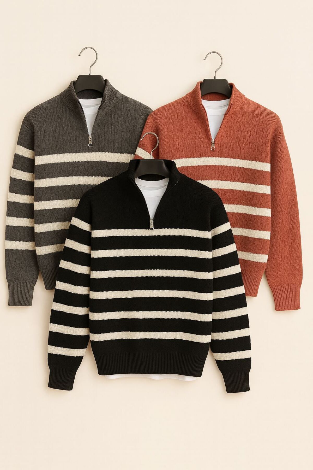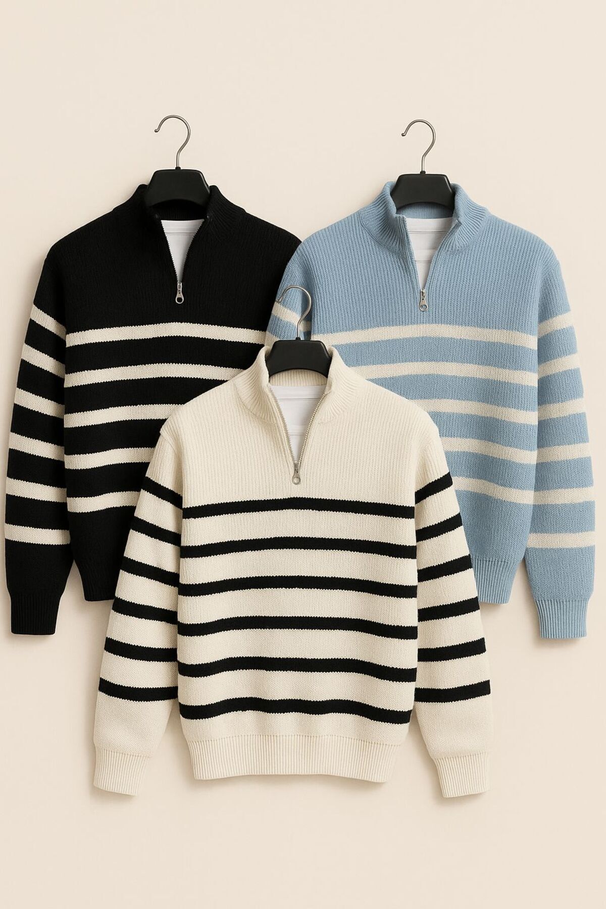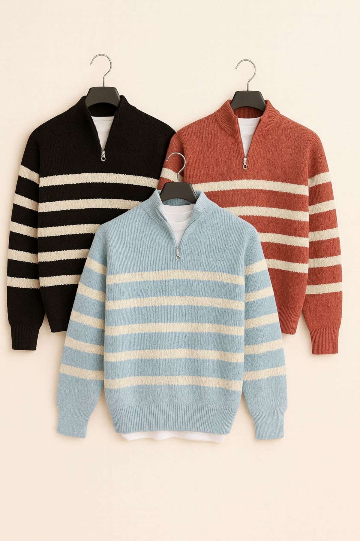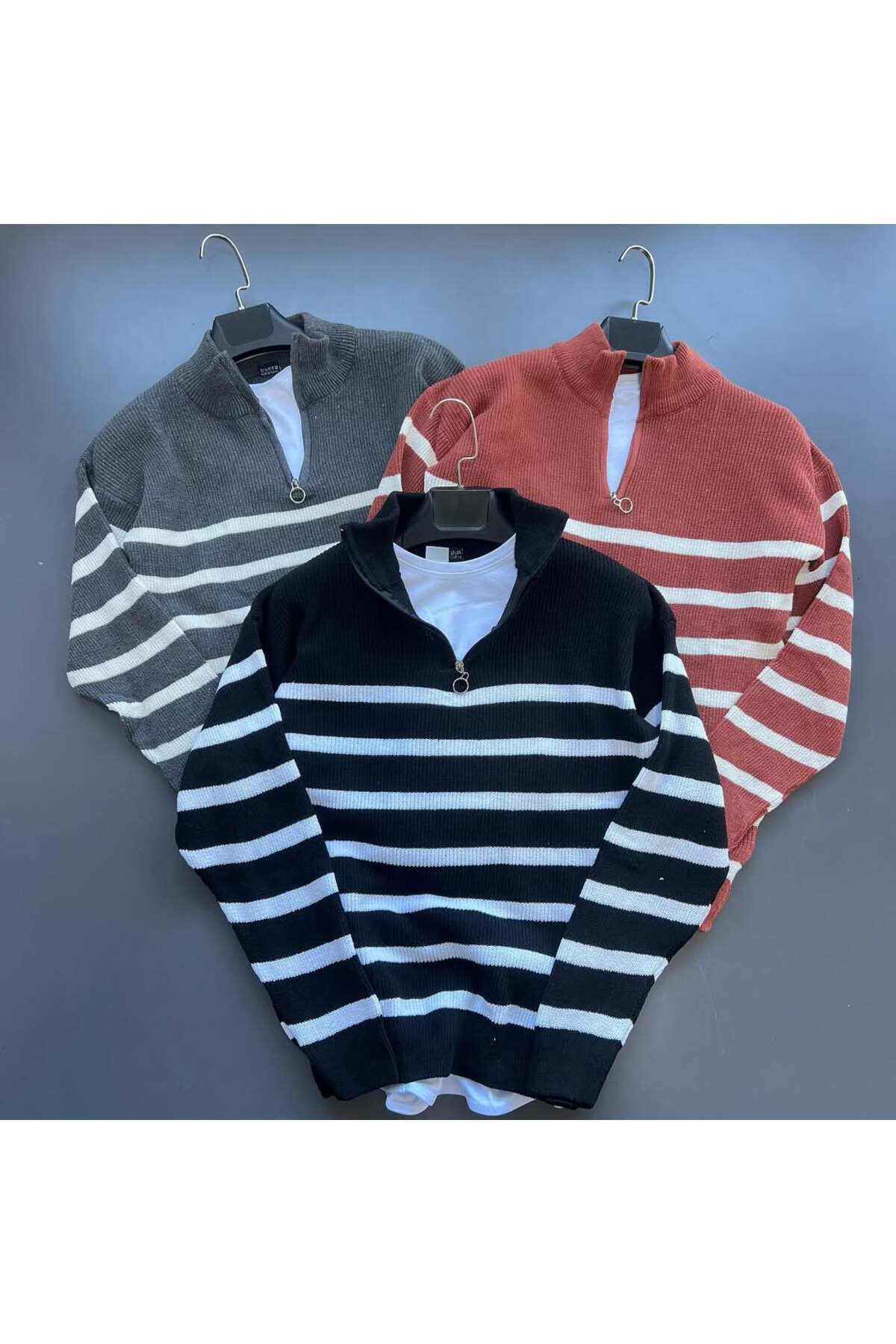 3lü paket Yarım Fermuarlı Triko Kazak 3lü paket Yarım Fermuarlı Triko Kazak Pepule2024kıssssss 2XL