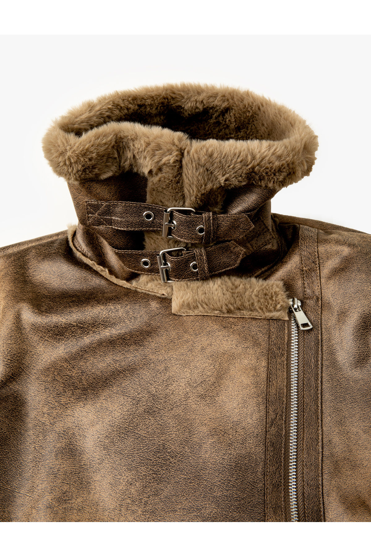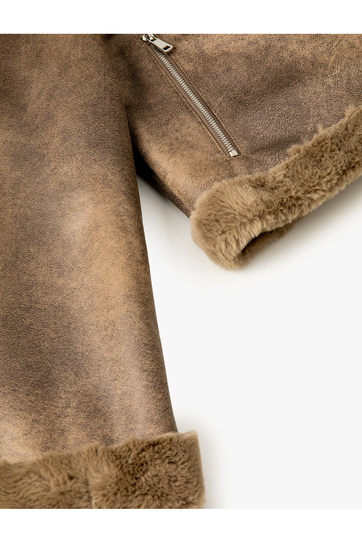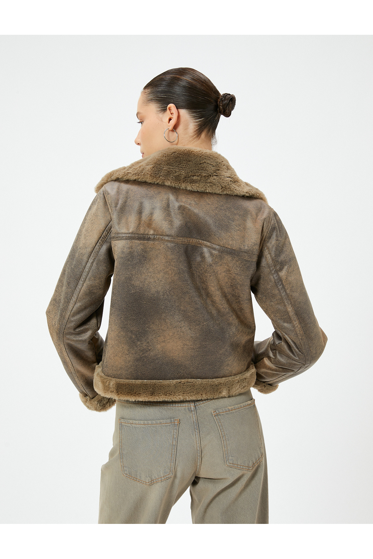 Yakası Kürklü Fermuarlı Cepli Biker Mont Yakası Kürklü Fermuarlı Cepli Biker Mont 5WAL20010IW 42