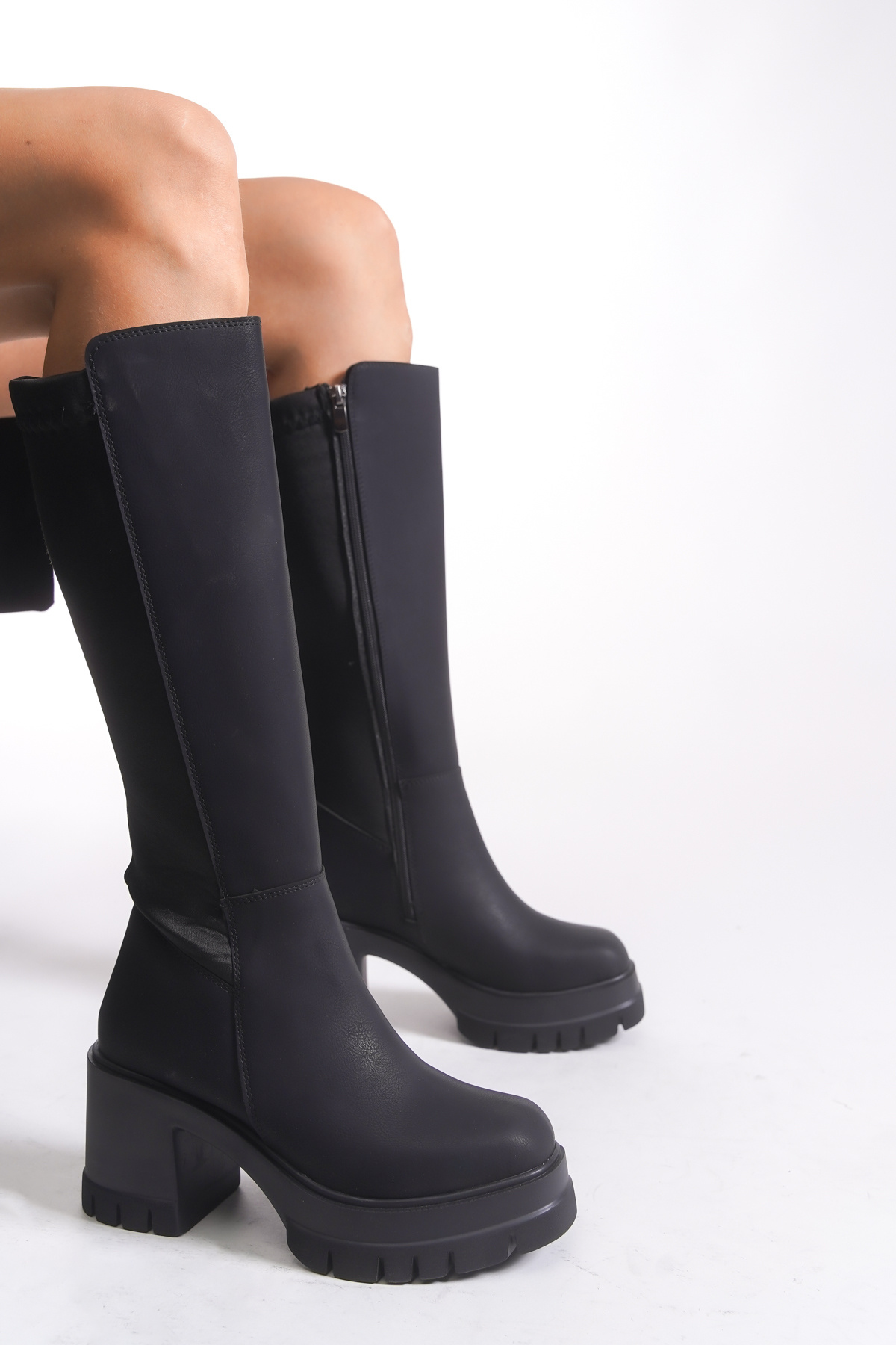 Chelsie Siyah Yüksek Topuklu Platformlu Kısa Kadın Çizme Chelsie Siyah Yüksek Topuklu Platformlu Kısa Kadın Çizme 27KC901 40