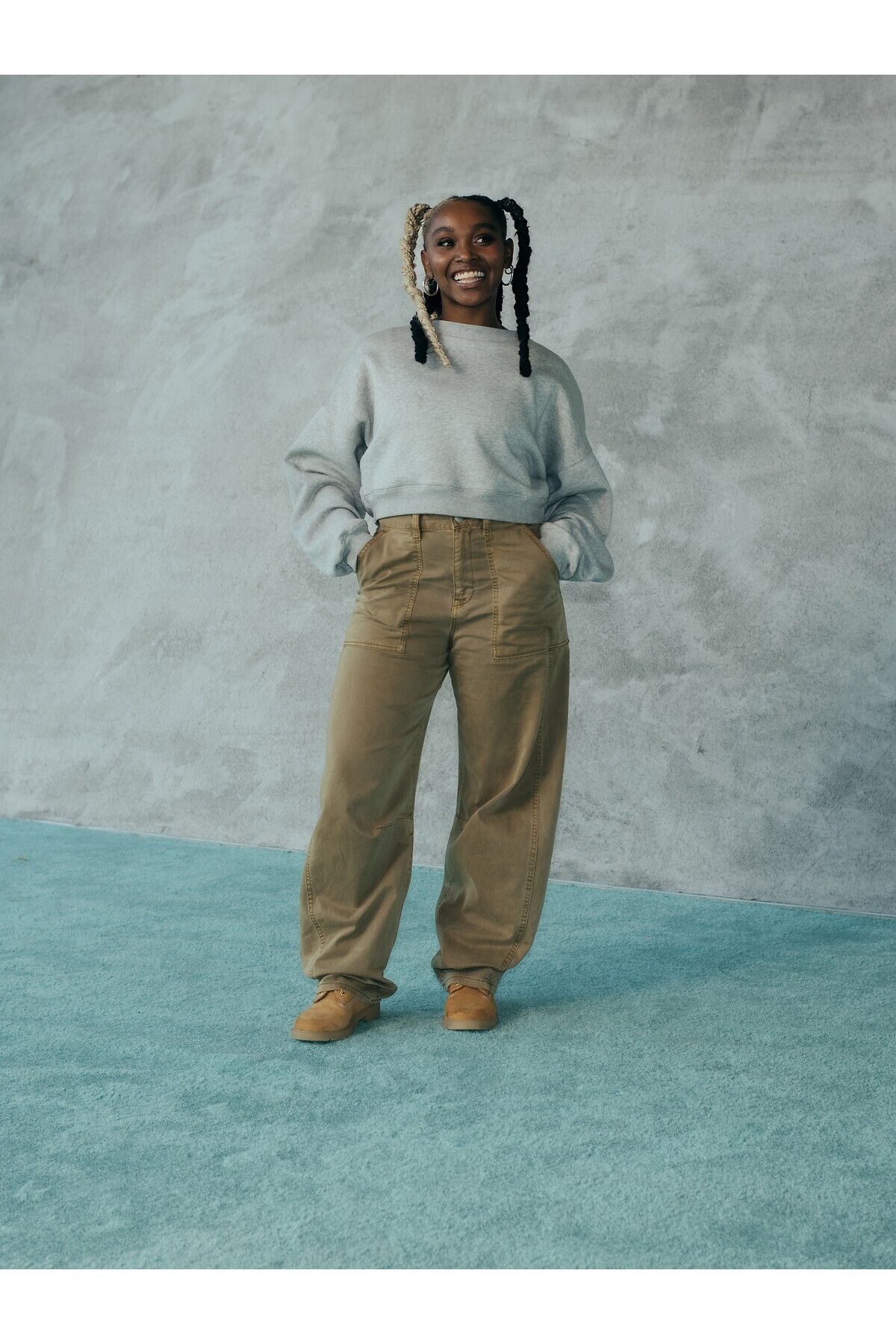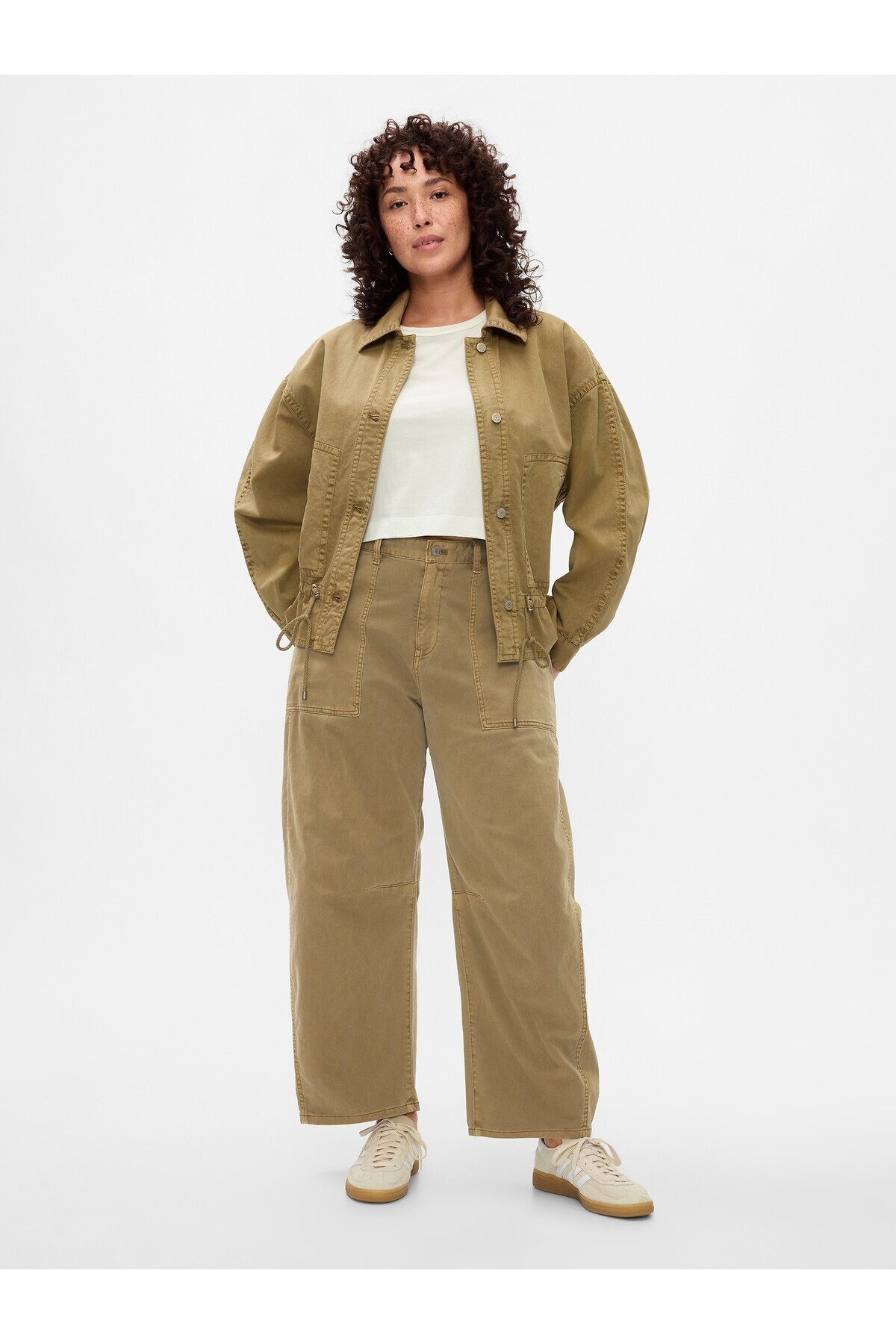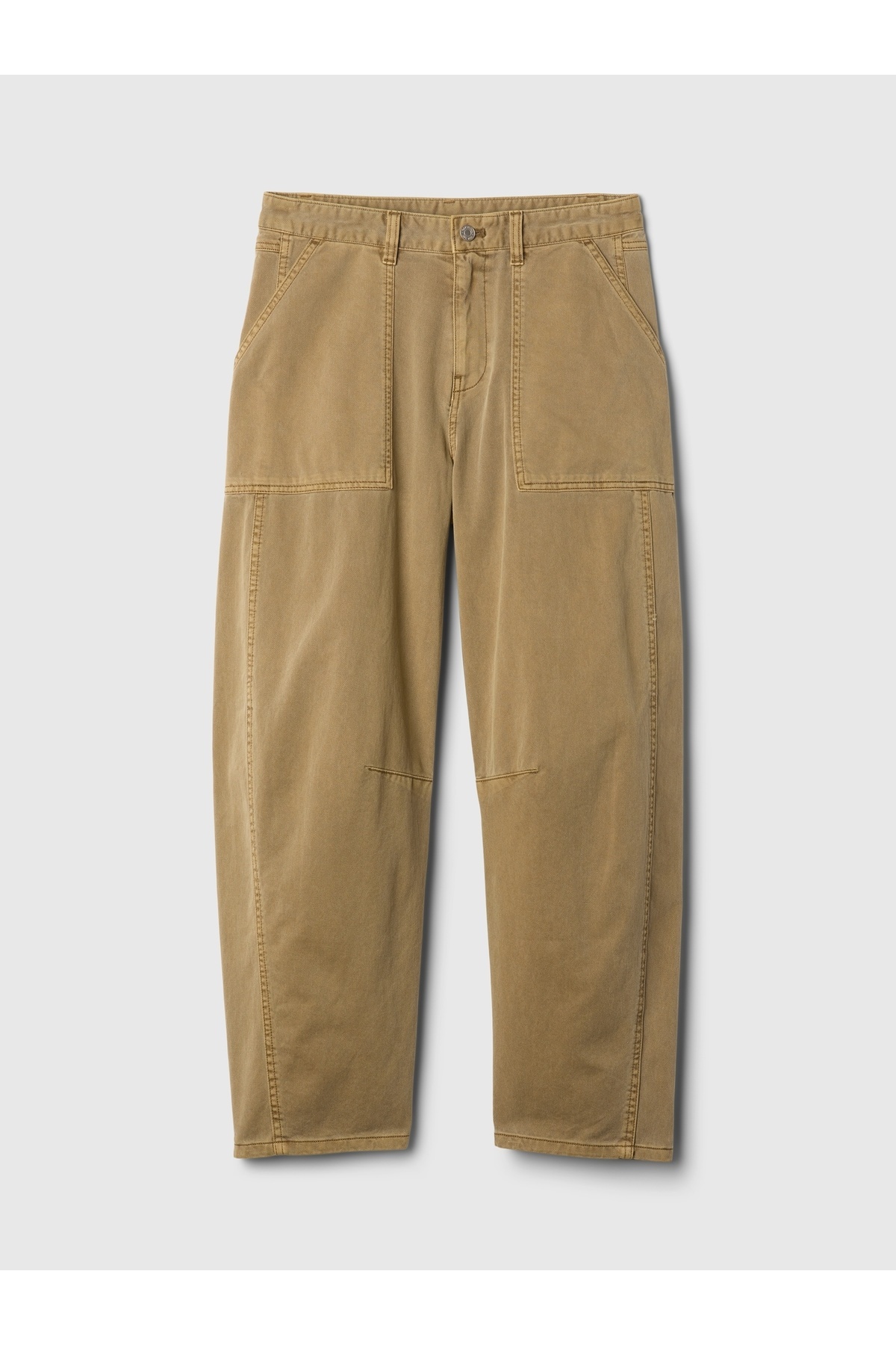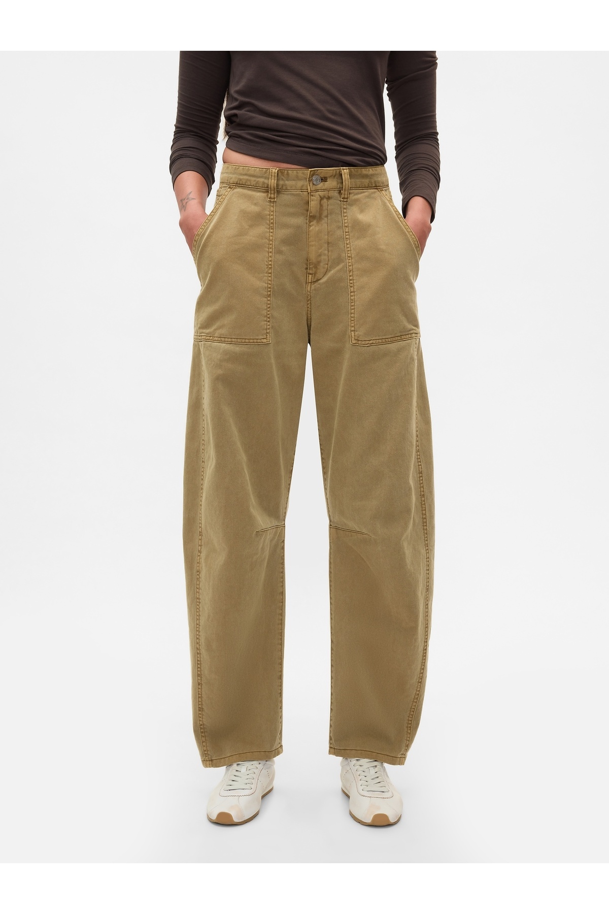 Kadın Kahverengi Mid Rise Twill Barrel Pantolon Kadın Kahverengi Mid Rise Twill Barrel Pantolon 518093 32