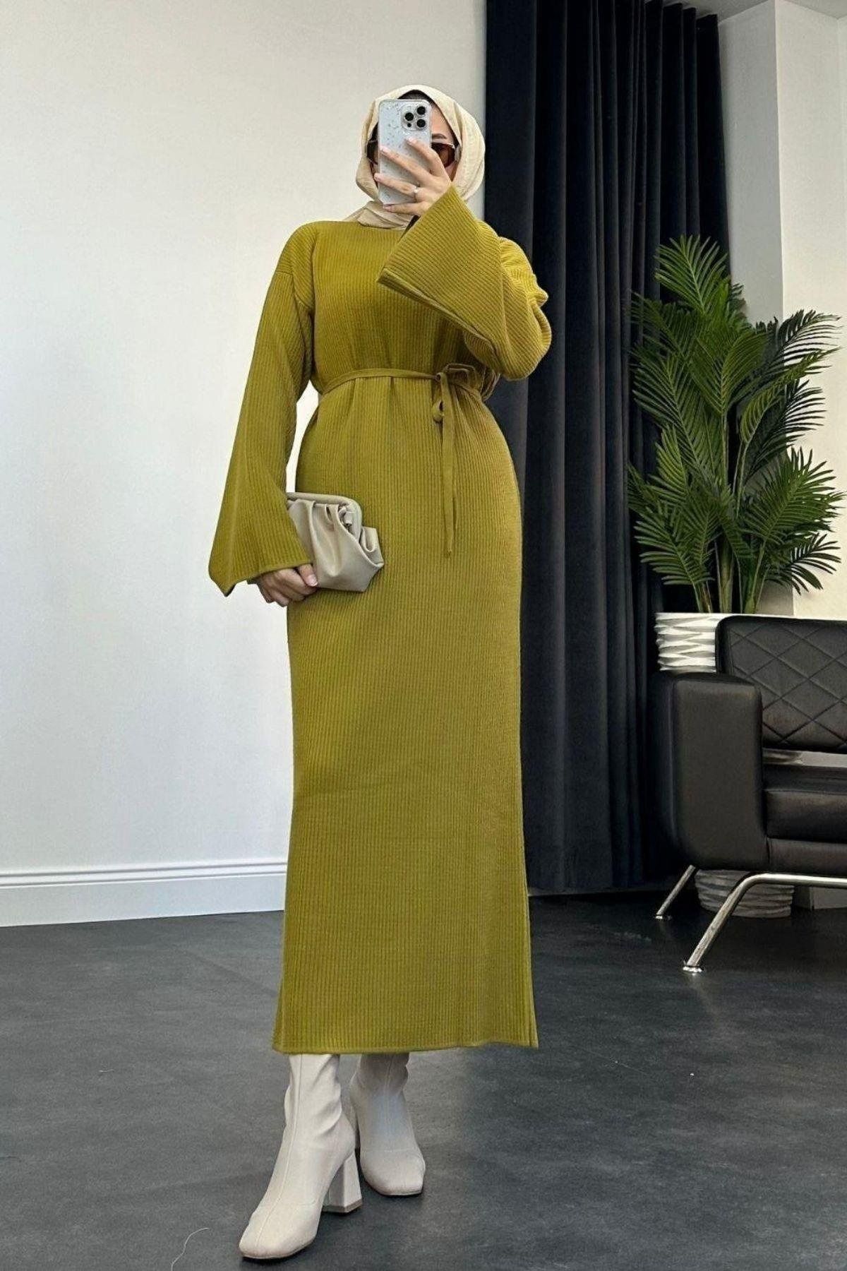 Triko Uzun Elbise Yarasa Kol Tesettür Elbise Yağ Yeşili Standart Beden (36/44 Arasi) Triko Uzun Elbise Yarasa Kol Tesettür Elbise Yağ Yeşili Standart Beden (36/44 Arasi) 10NMR101 Standart