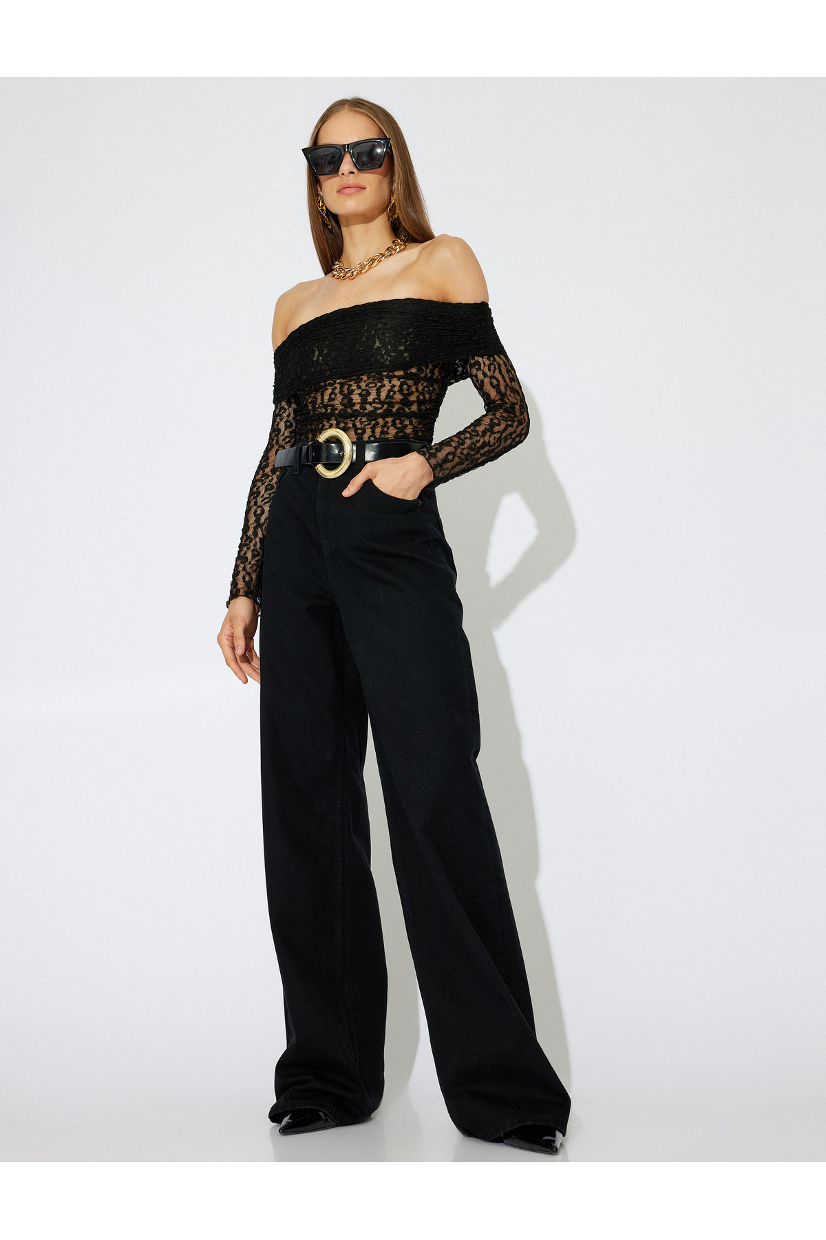 Madonna Yaka Bluz Omzu Açık Yarı Transparan Uzun Kollu Slim Fit Madonna Yaka Bluz Omzu Açık Yarı Transparan Uzun Kollu Slim Fit 5WAK80060EK XL