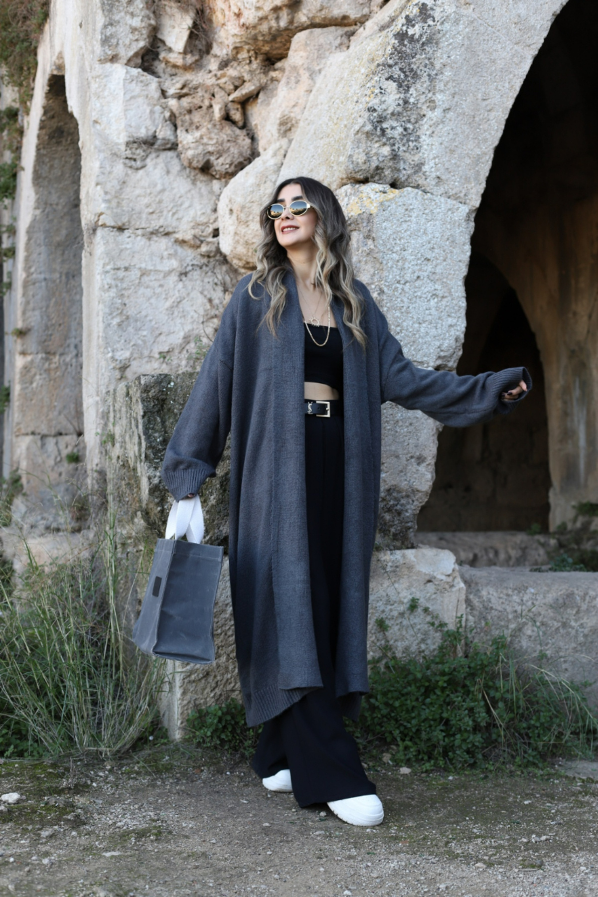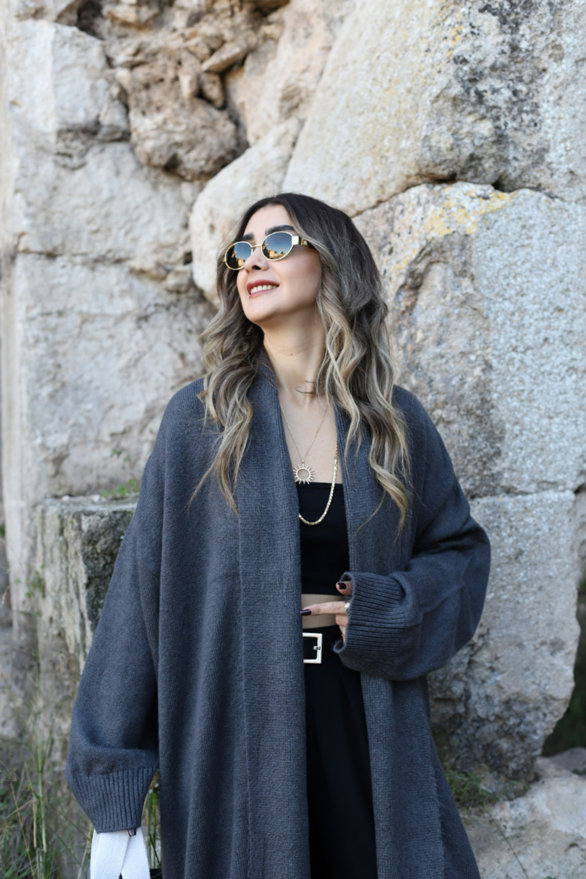 Füme Standart Beden Önü Açık Şal Yaka Hırka Füme Standart Beden Önü Açık Şal Yaka Hırka P1052S3486 Standart