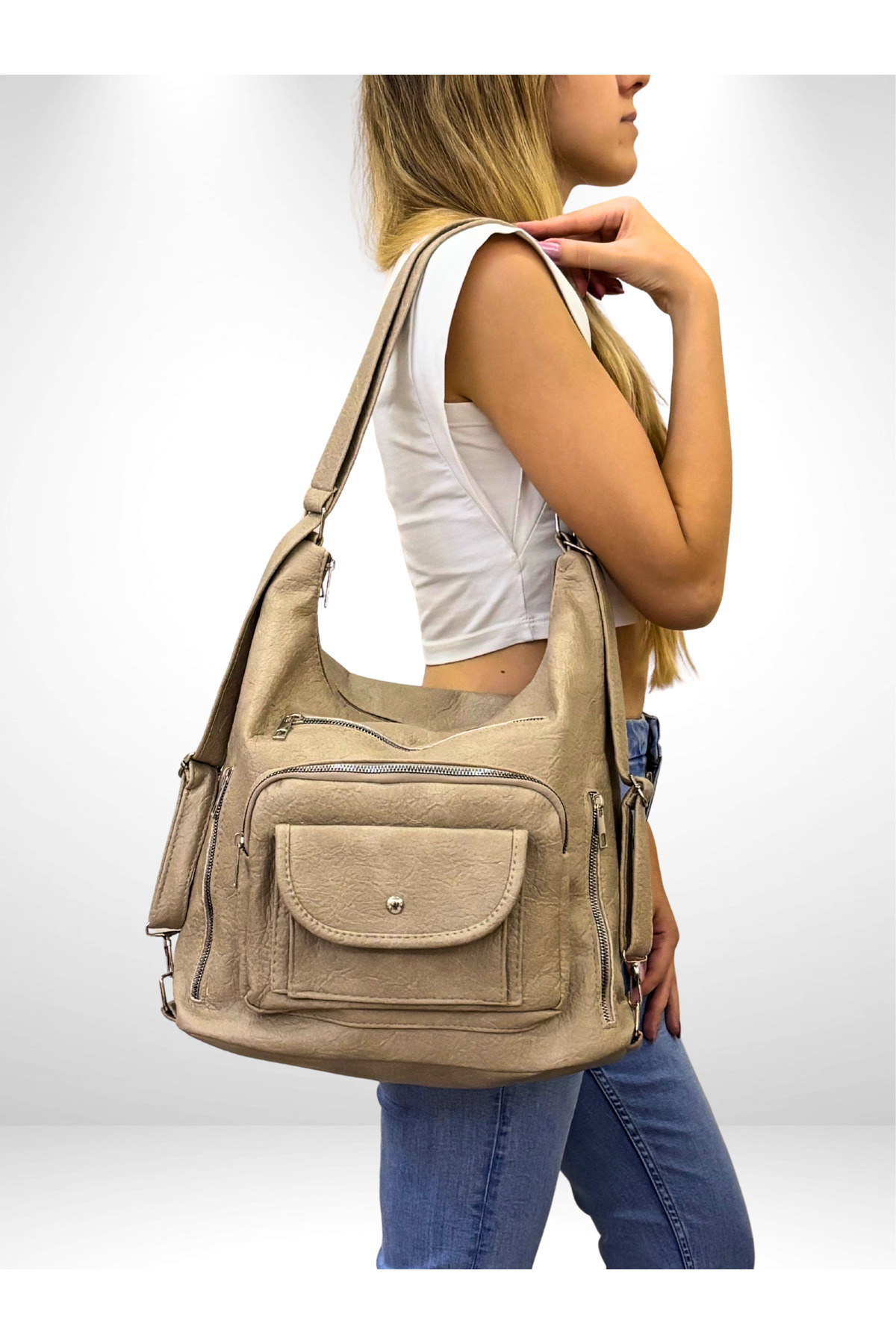 Yumuşak Deri Hem Sırt Hem Kol Çantası Yumuşak Deri Hem Sırt Hem Kol Çantası HD-5004İP L