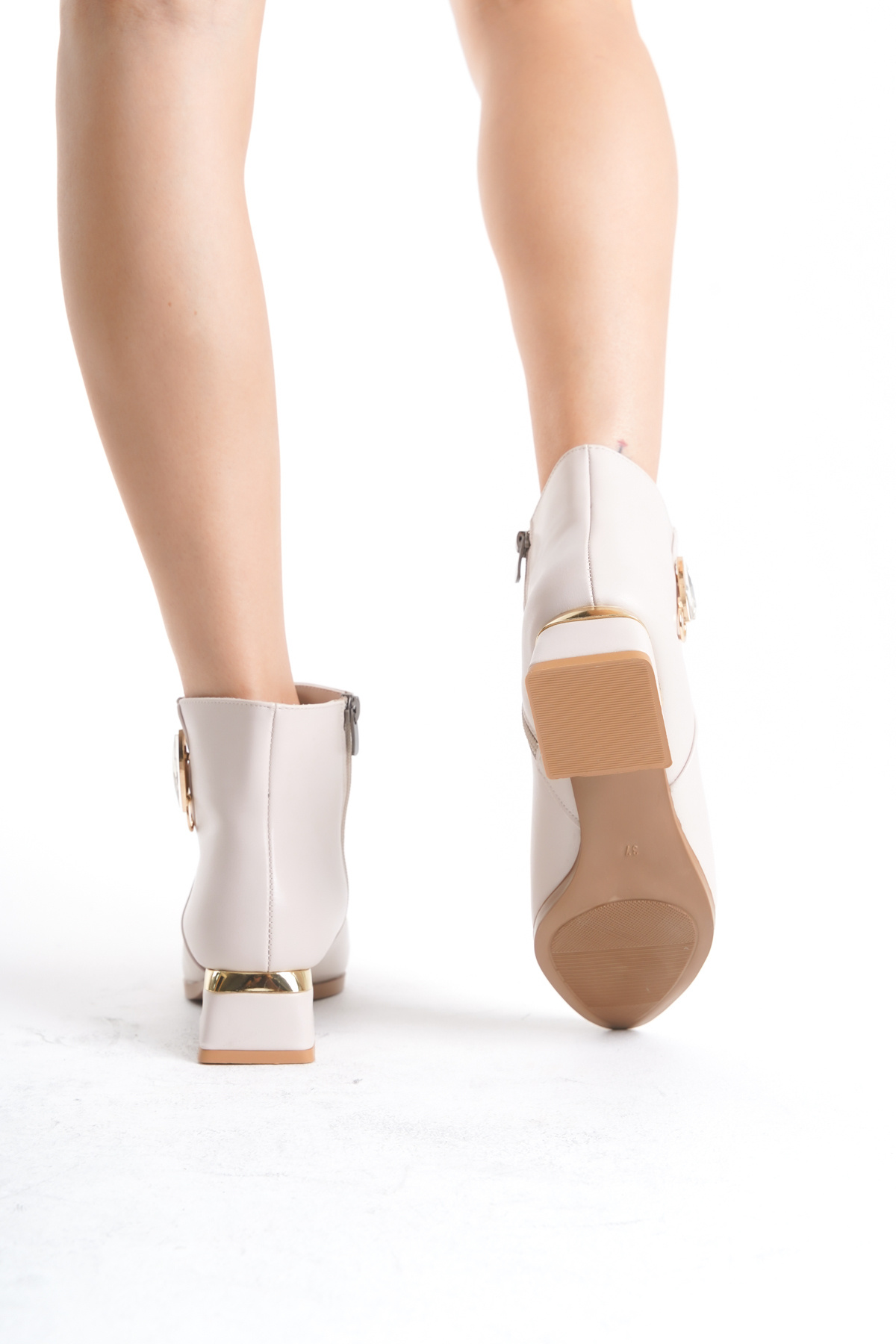 Kısa Topuklu Fermuarlı Taş Detaylı Kadın Bej Bot Bootie Kısa Topuklu Fermuarlı Taş Detaylı Kadın Bej Bot Bootie pckis-08 40