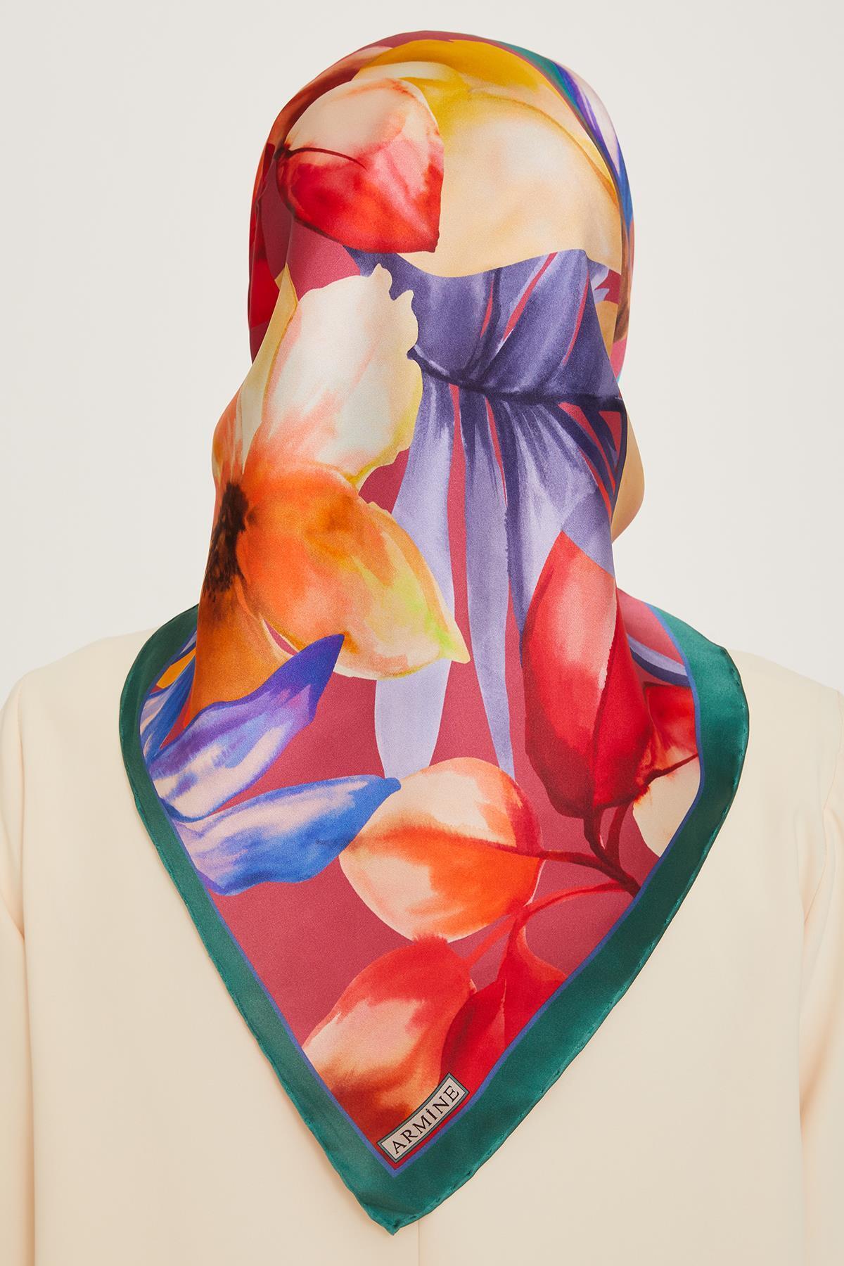İpek Eşarp 2025 Kış - 9205-57 Yeşil Bordo Twill İpek Eşarp 2025 Kış - 9205-57 Yeşil Bordo Twill 90x90