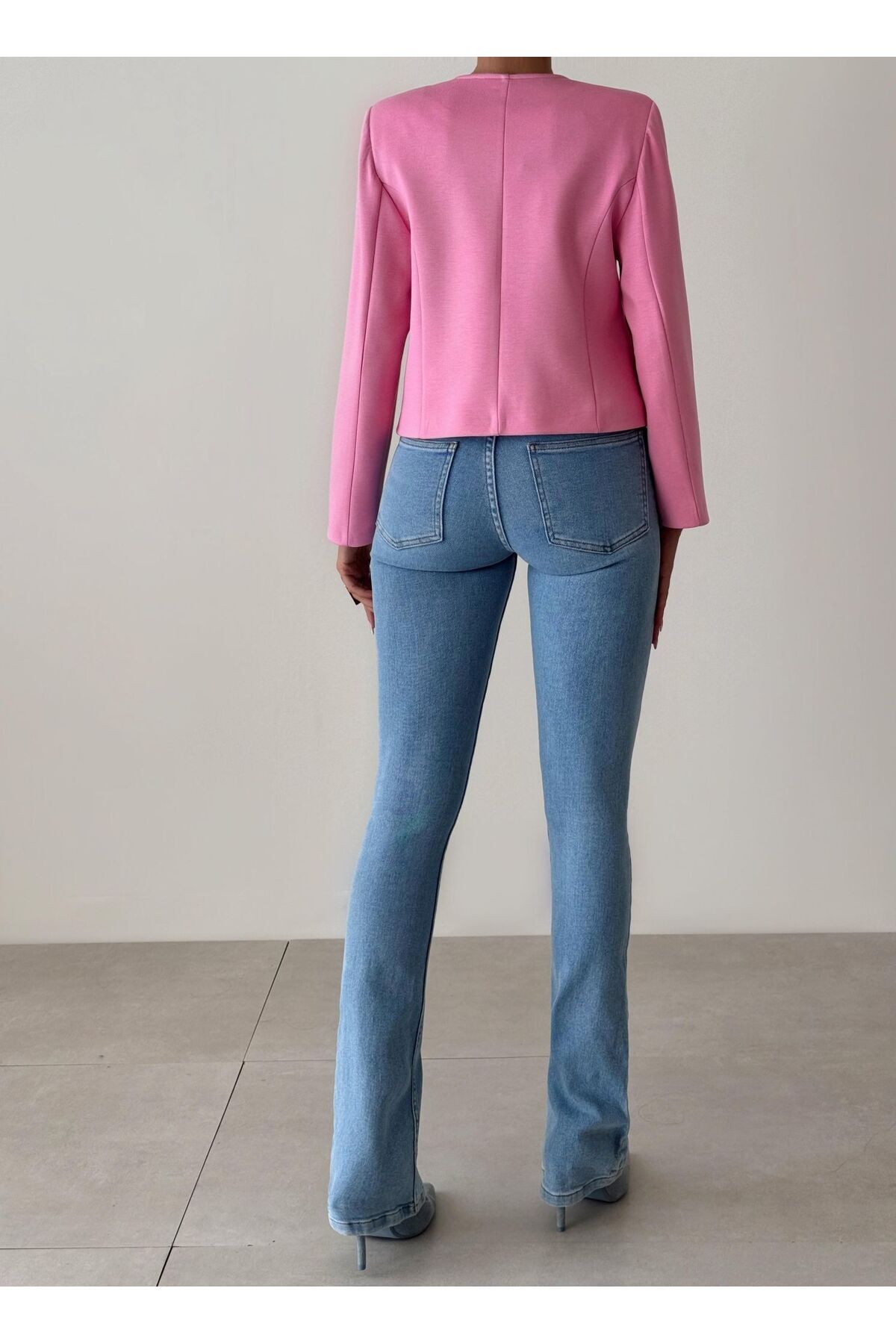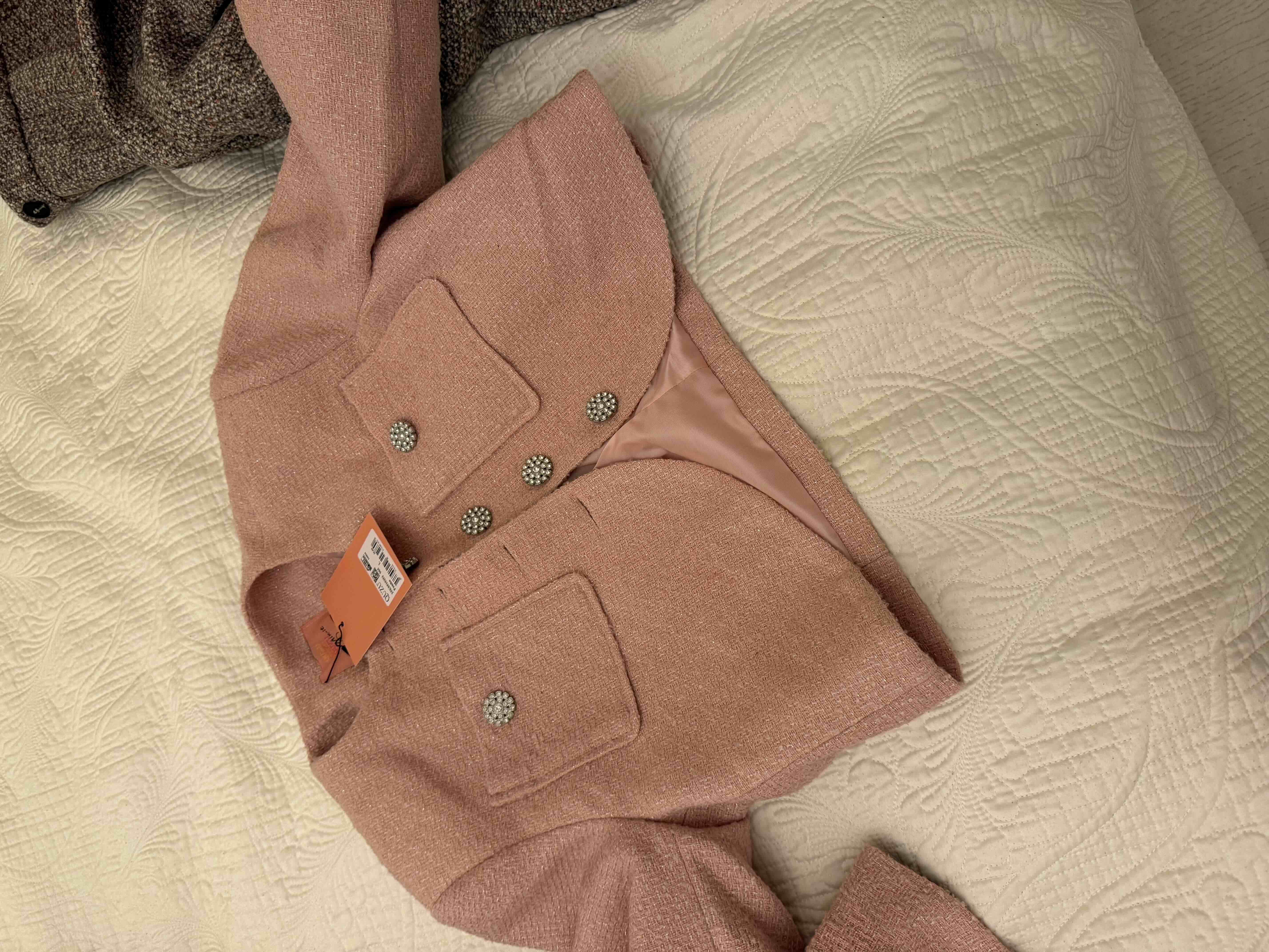 Parlak Taşlı Simli Tüvit Ceket Pembe Parlak Taşlı Simli Tüvit Ceket Pembe 25K0510253-065 L