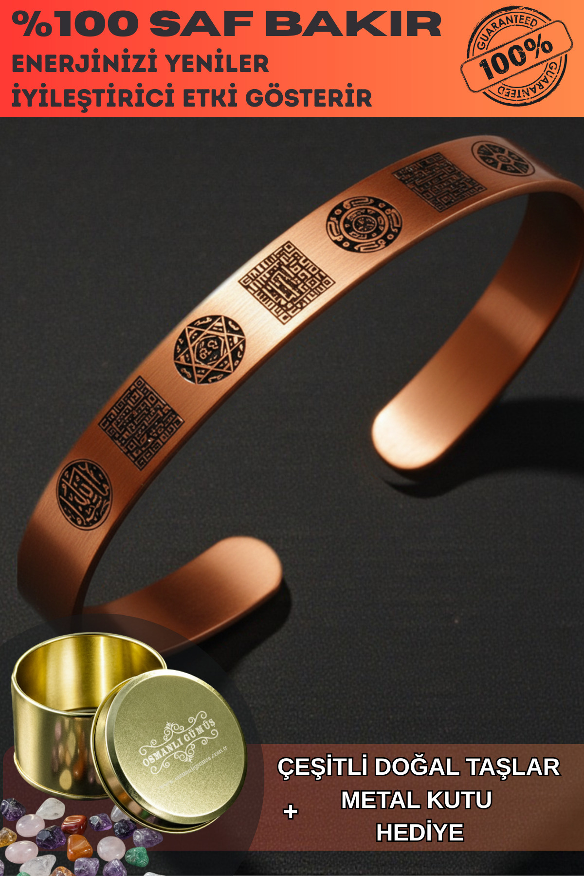 Bakır Bileklik Silinmez Zırh Koruma Dualı Celcelutiye Metal Kutu Kuvars Taş Kadın Erkek Bilezik Bakır Bileklik Silinmez Zırh Koruma Dualı Celcelutiye Metal Kutu Kuvars Taş Kadın Erkek Bilezik BB001 تک سایز