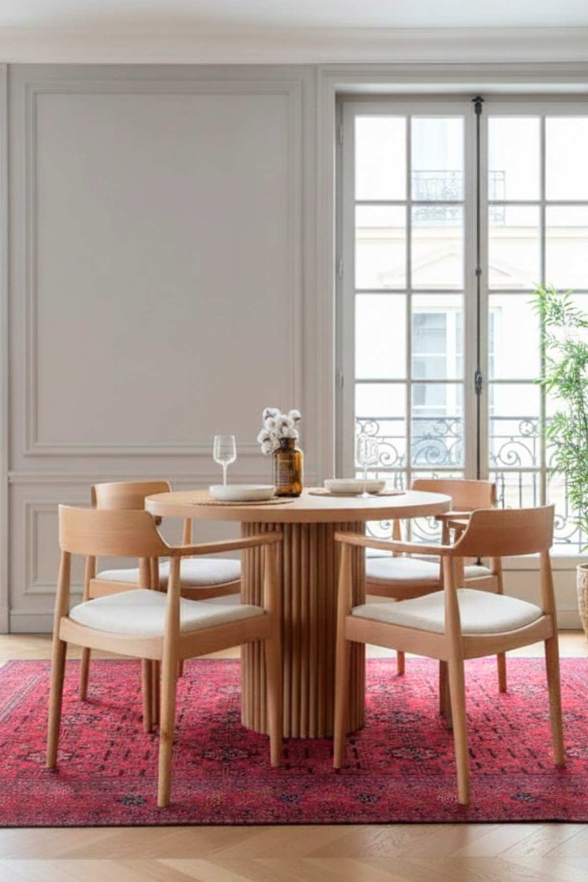 Eva Yuvarlak Ahşap Masa Takımı 110x110 – 4 Kayın Kolçaklı Sandalye, Bohem & İskandinav Eva Yuvarlak Ahşap Masa Takımı 110x110 – 4 Kayın Kolçaklı Sandalye, Bohem & İskandinav EVA تک سایز