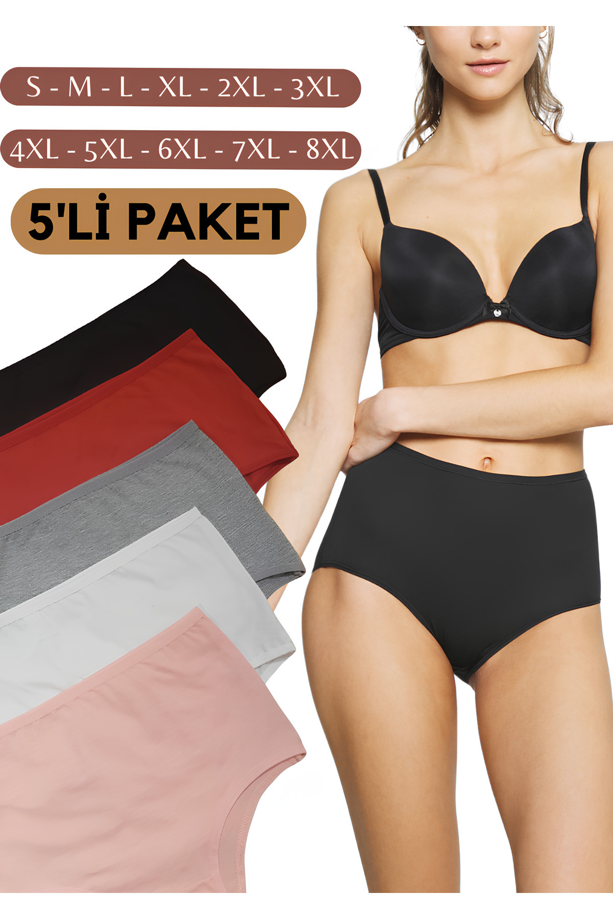 5'li Paket Yüksel Bel Bato Büyük Beden Pamuklu Penye Likralı Külot 5'li Paket Yüksel Bel Bato Büyük Beden Pamuklu Penye Likralı Külot 2286-5P 6XL