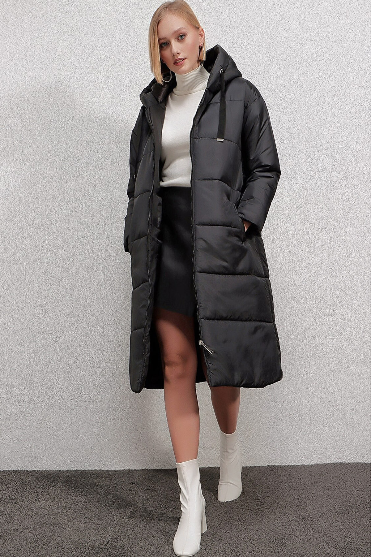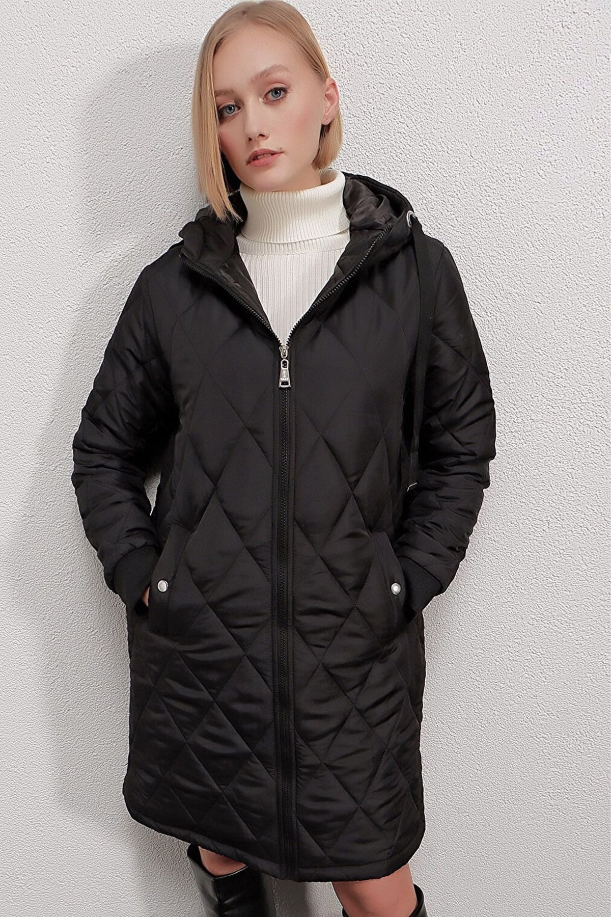 Baklayva Dikiş Desen Fermuar Kapamalı Kapüşonlu Uzun Kollu Diz Altı Midi Boy Hafif Dolgu Şişme Mont Baklayva Dikiş Desen Fermuar Kapamalı Kapüşonlu Uzun Kollu Diz Altı Midi Boy Hafif Dolgu Şişme Mont ODRP-1441 42