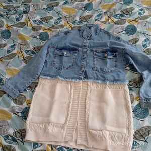 Saç Örgü Detaylı Triko Denim Ceket Saç Örgü Detaylı Triko Denim Ceket 24538 Standart