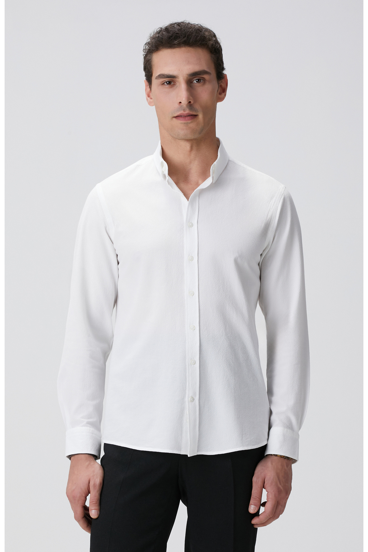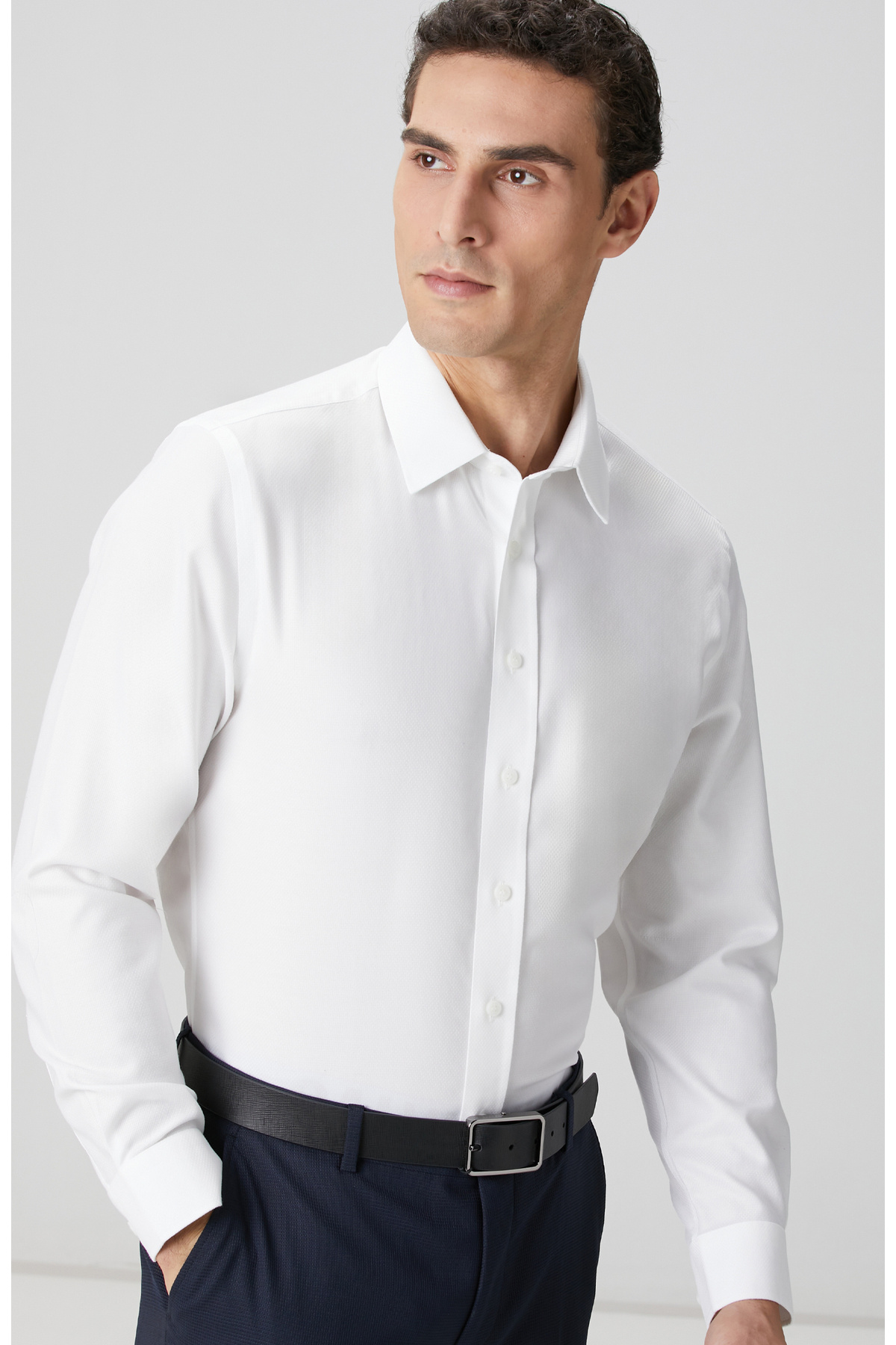 Beyaz Non-ıron Jakarlı Gömlek Beyaz Non-ıron Jakarlı Gömlek 1091834 46