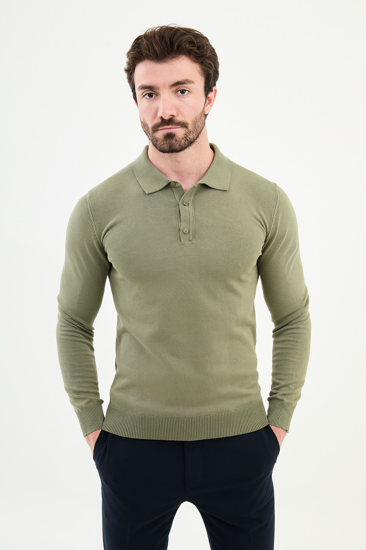 Düz Slim Fit Polo Yaka Erkek Triko Kazak Haki - 11501.24K Düz Slim Fit Polo Yaka Erkek Triko Kazak Haki - 11501.24K 2XL