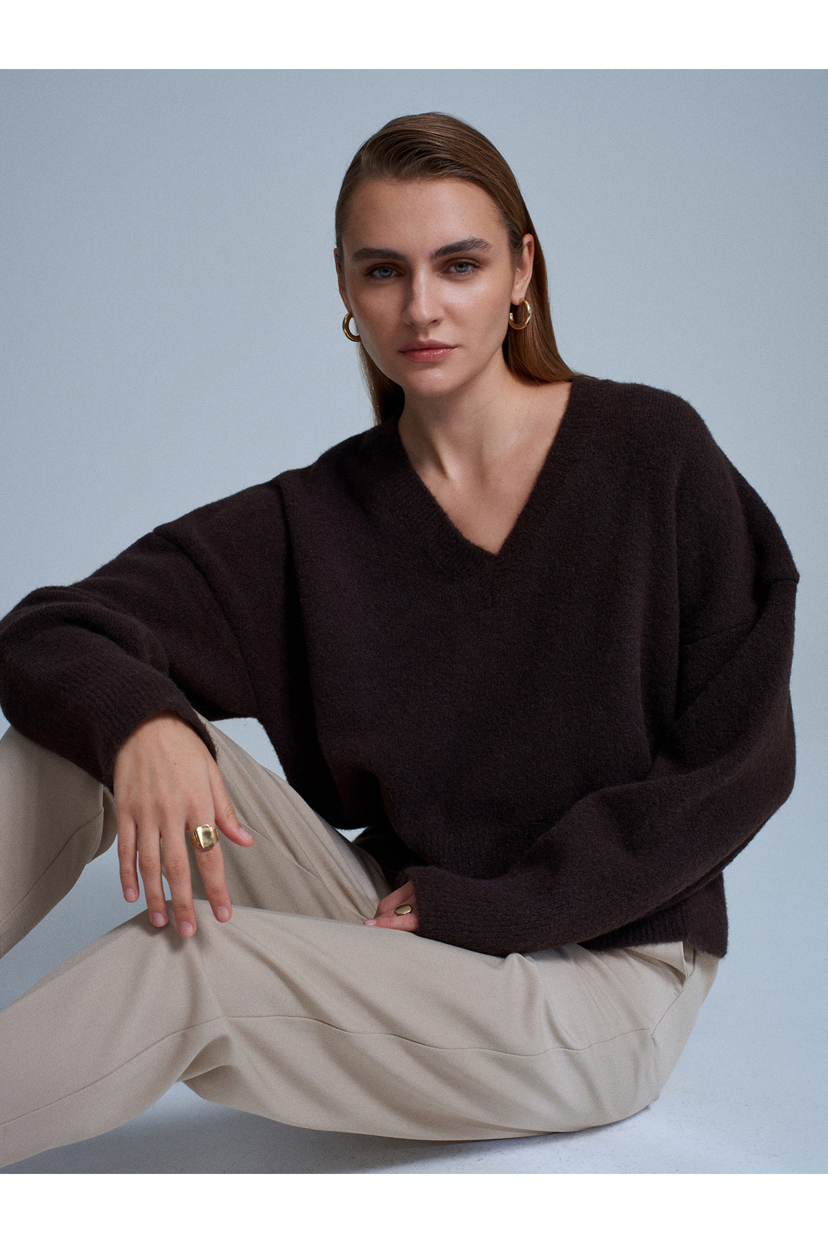 10645 V Yaka Yumuşak Dokulu Triko Kazak-Füme M. 10645 V Yaka Yumuşak Dokulu Triko Kazak-Füme M. 101A10645 Standart