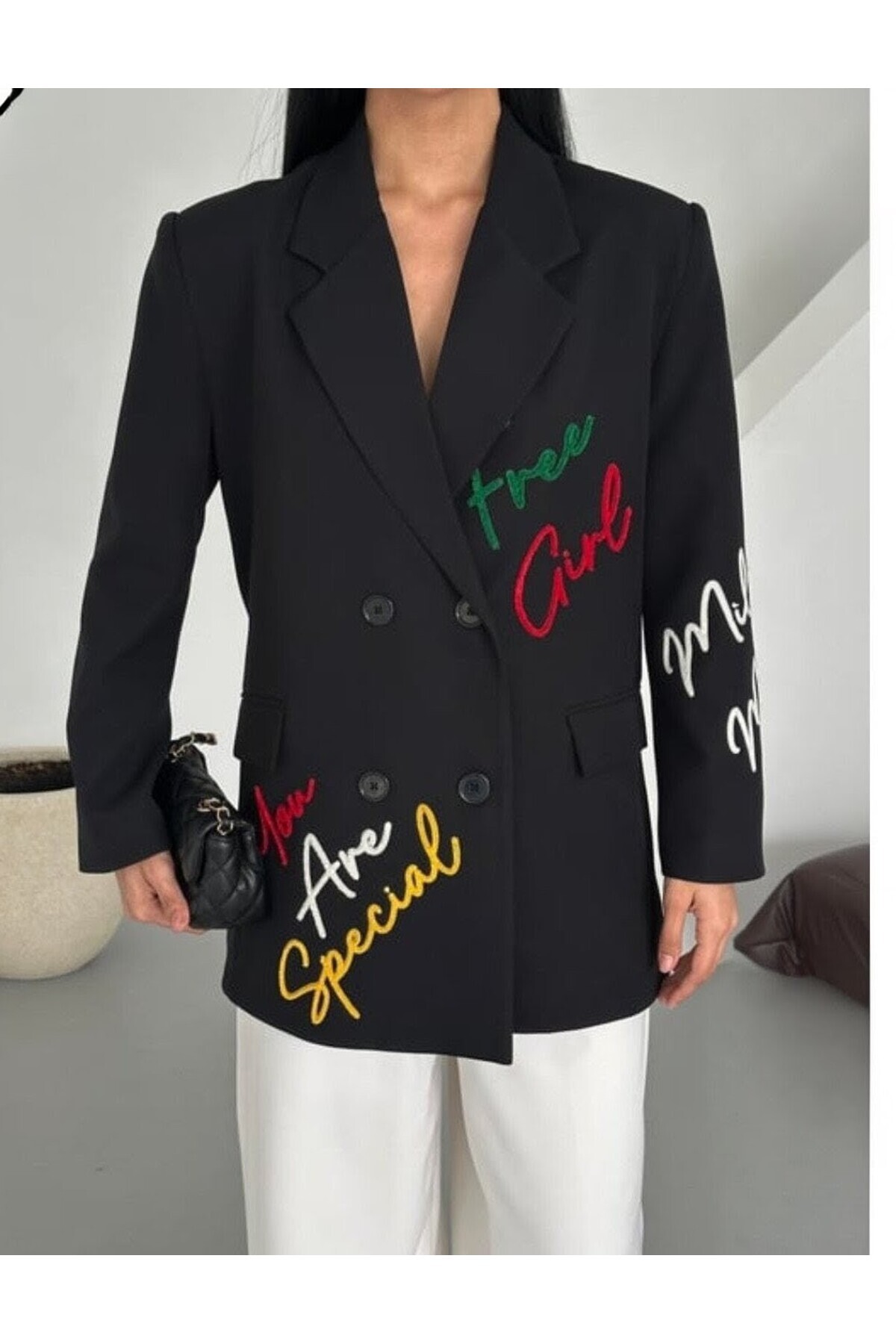Kuşaklı Omuzları Taş Işlemeli Double Kumaş Blazer Ceket Kuşaklı Omuzları Taş Işlemeli Double Kumaş Blazer Ceket 065 XL