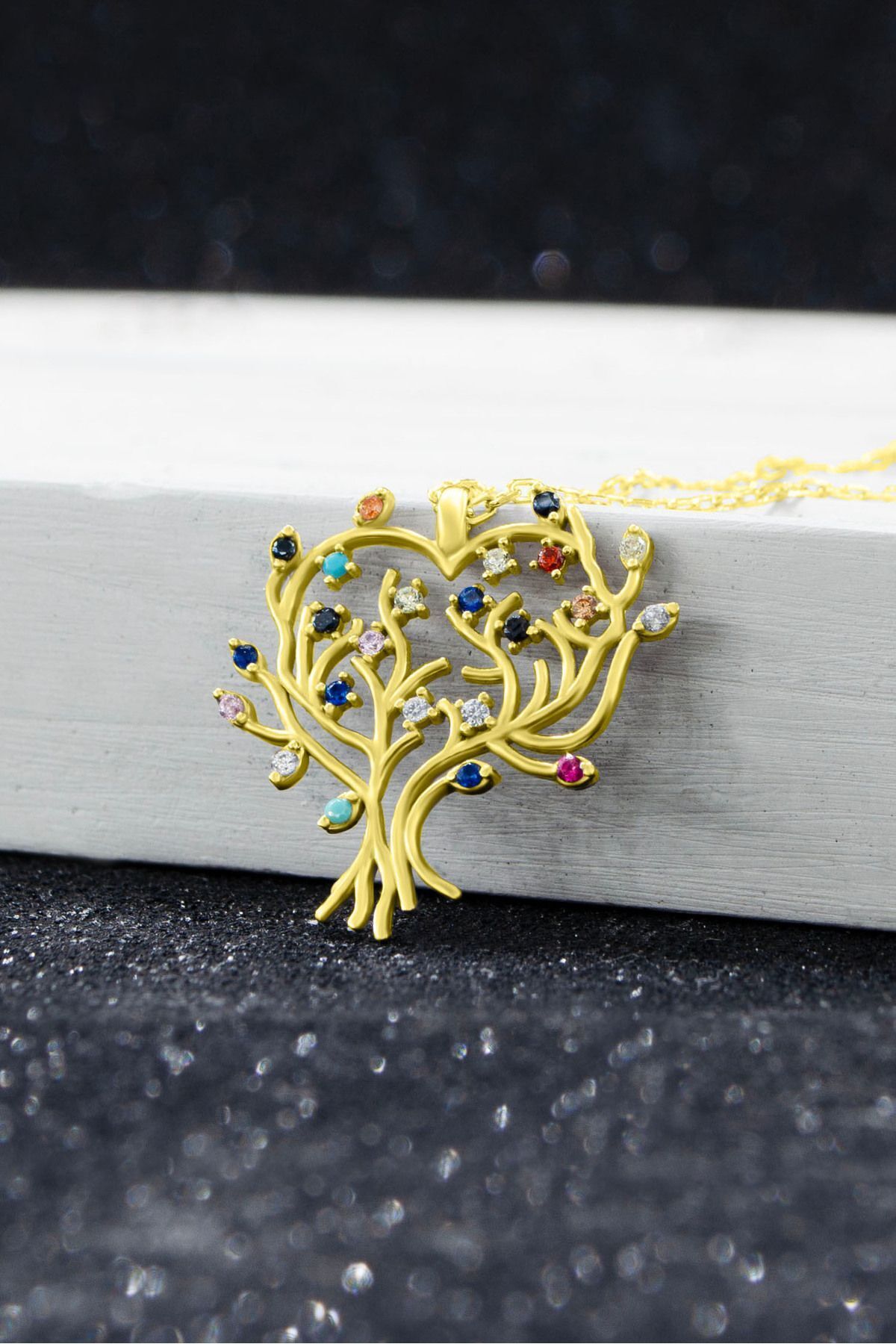 Hayat Ağacı Renkli Zirkon Taşlı 925 Ayar Gümüş Kadın Kolye Hayat Ağacı Renkli Zirkon Taşlı 925 Ayar Gümüş Kadın Kolye 01479 46 cm