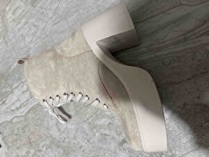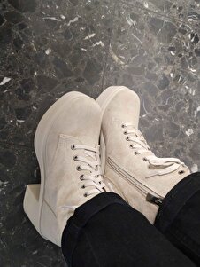 Yandan Fermuarlı Bağcıklı Yüksek Kalın Topuklu Kadın Bej Uzun Bot Yandan Fermuarlı Bağcıklı Yüksek Kalın Topuklu Kadın Bej Uzun Bot zek-22 40