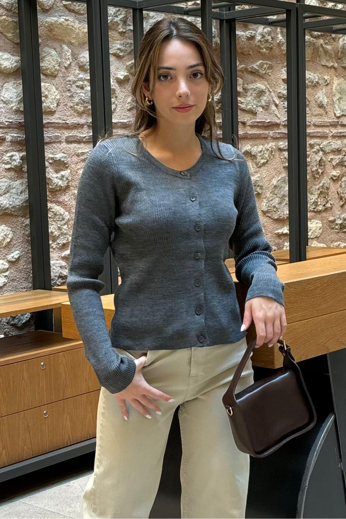 Antrasit Düğmeli Uzun Kollu Triko Hırka SH209 Antrasit Düğmeli Uzun Kollu Triko Hırka SH209 XL