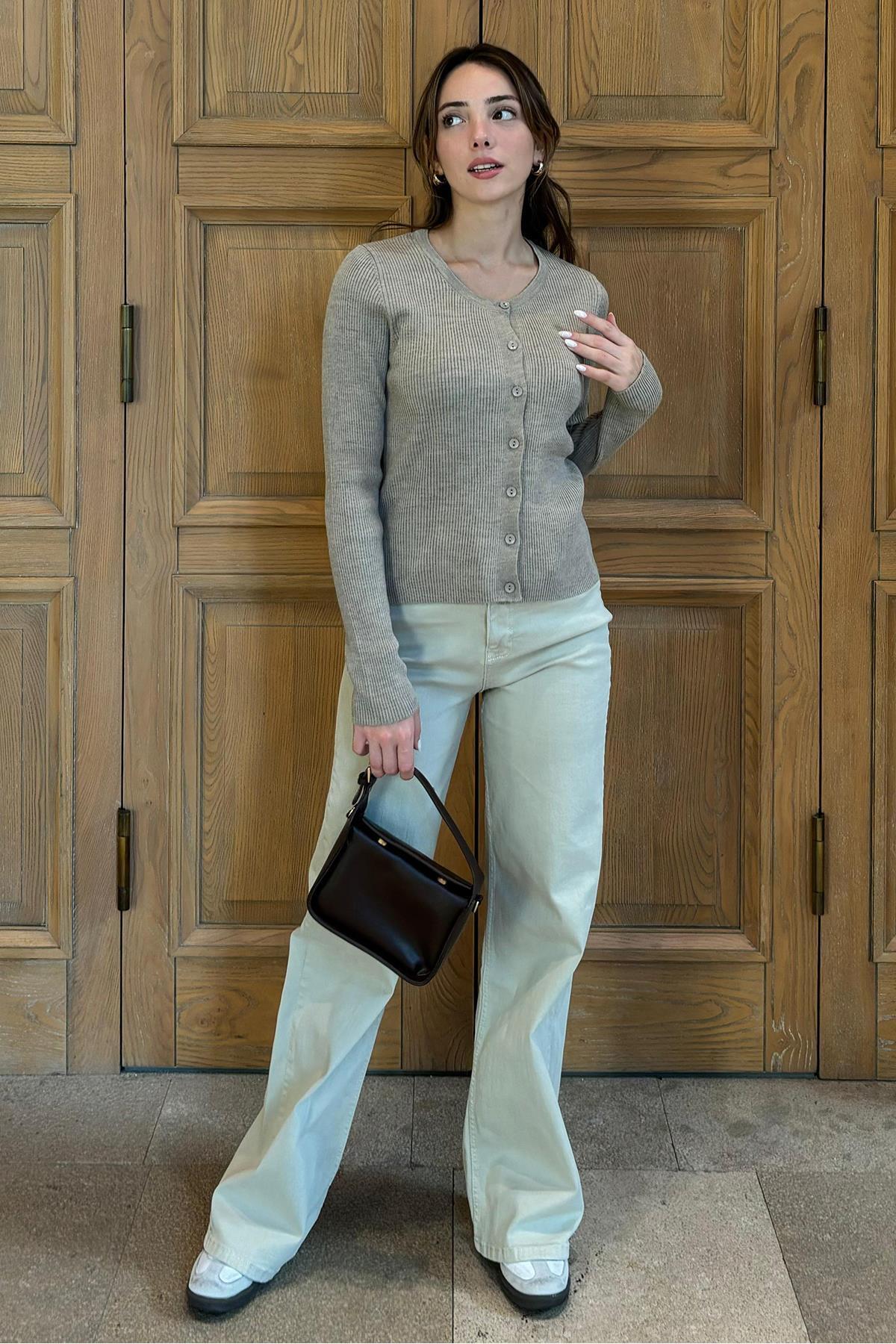 Vizon Düğmeli Uzun Kollu Triko Hırka SH209 Vizon Düğmeli Uzun Kollu Triko Hırka SH209 XL